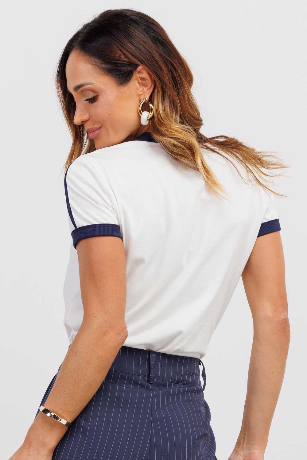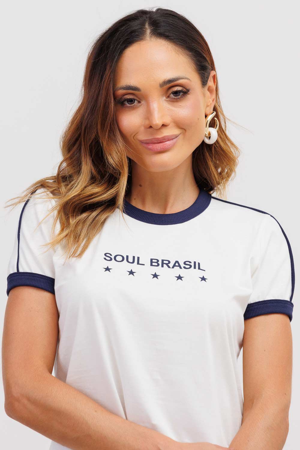 Essencial com identidade. A Blusa Angélica traz uma proposta clean com toque esportivo, perfeita para quem busca praticidade sem abrir mão de um visual atual e bem resolvido. Confeccionada em meia malha, possui toque macio e caimento leve no corpo. O destaque fica para os acabamentos contrastantes na gola e nas mangas, que adicionam personalidade à peça, junto à estampa frontal discreta que reforça o estilo moderno.