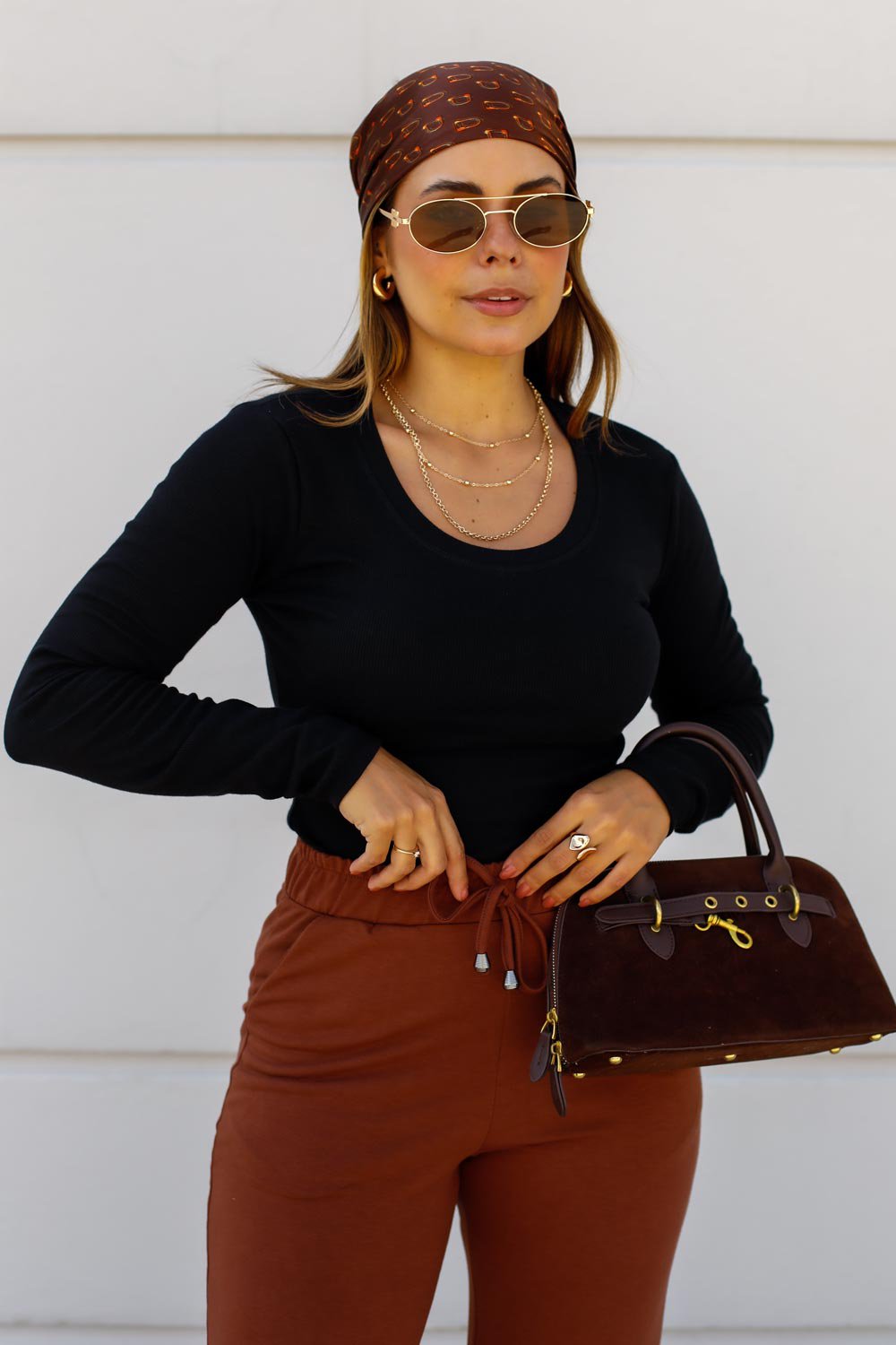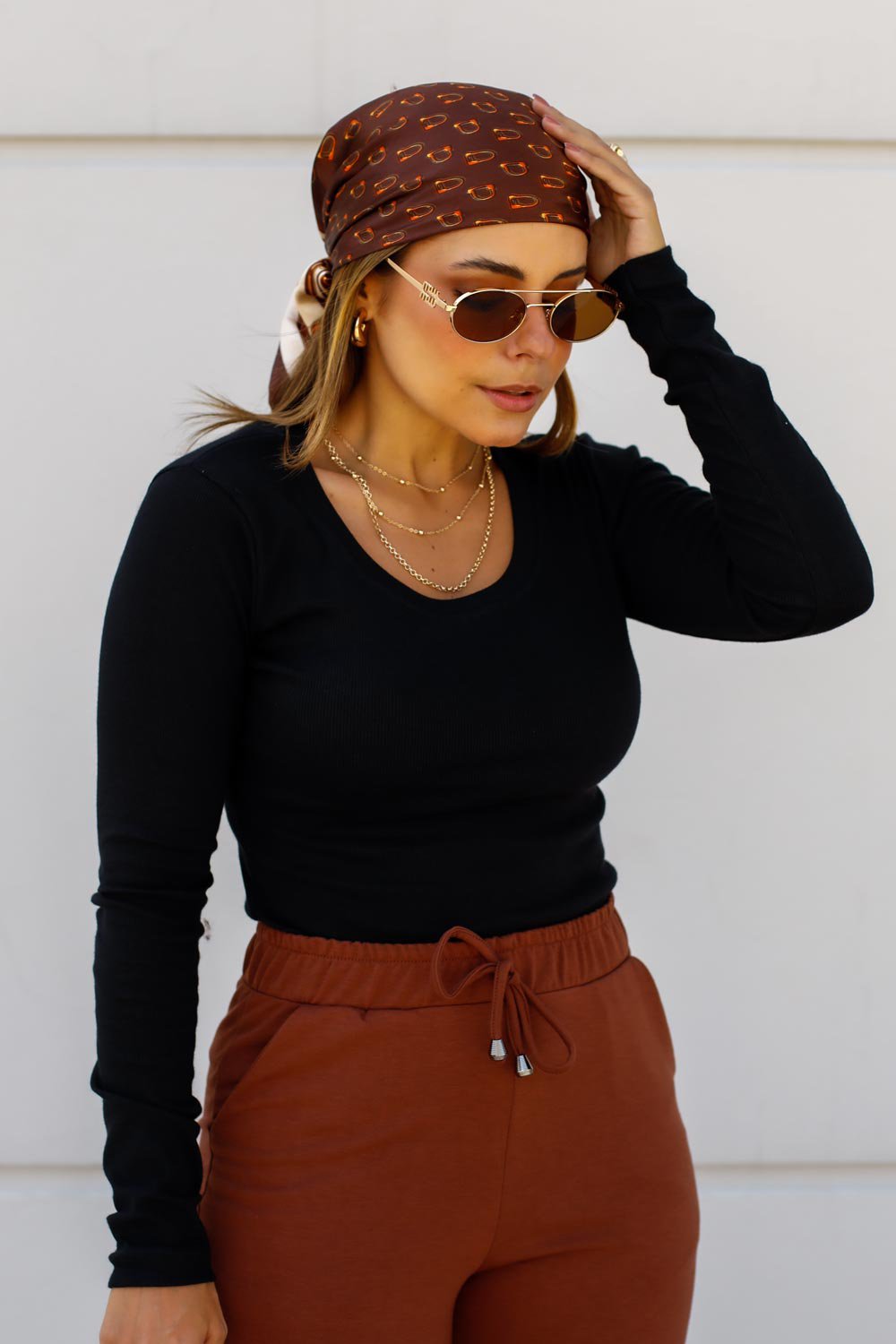 Design versátil: mangas longas e decote redondo para composições atemporais