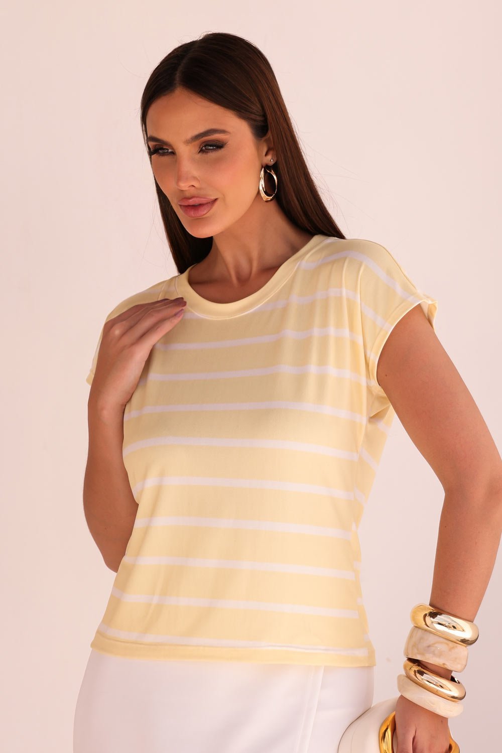 BLUSA FEMININA LISTRADA SIENA AMARELO