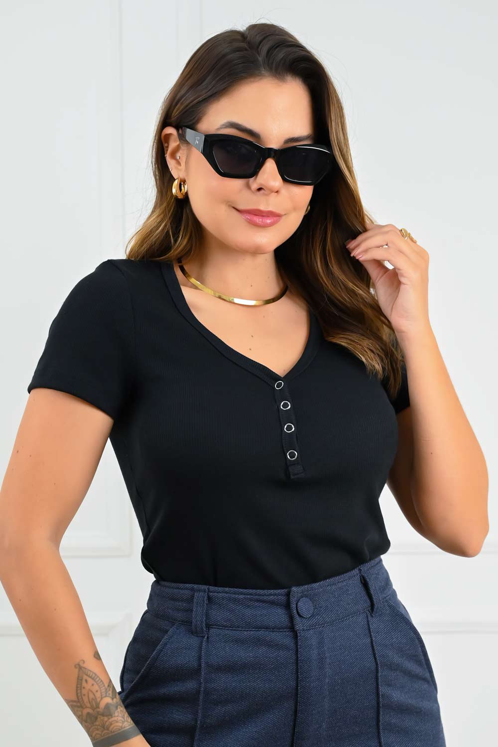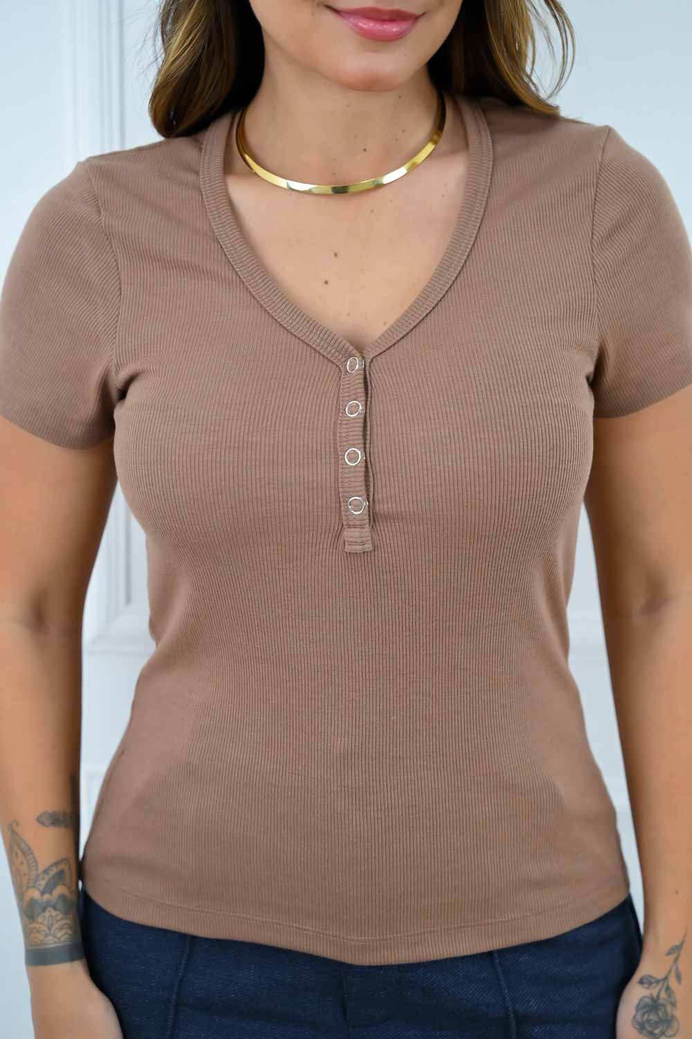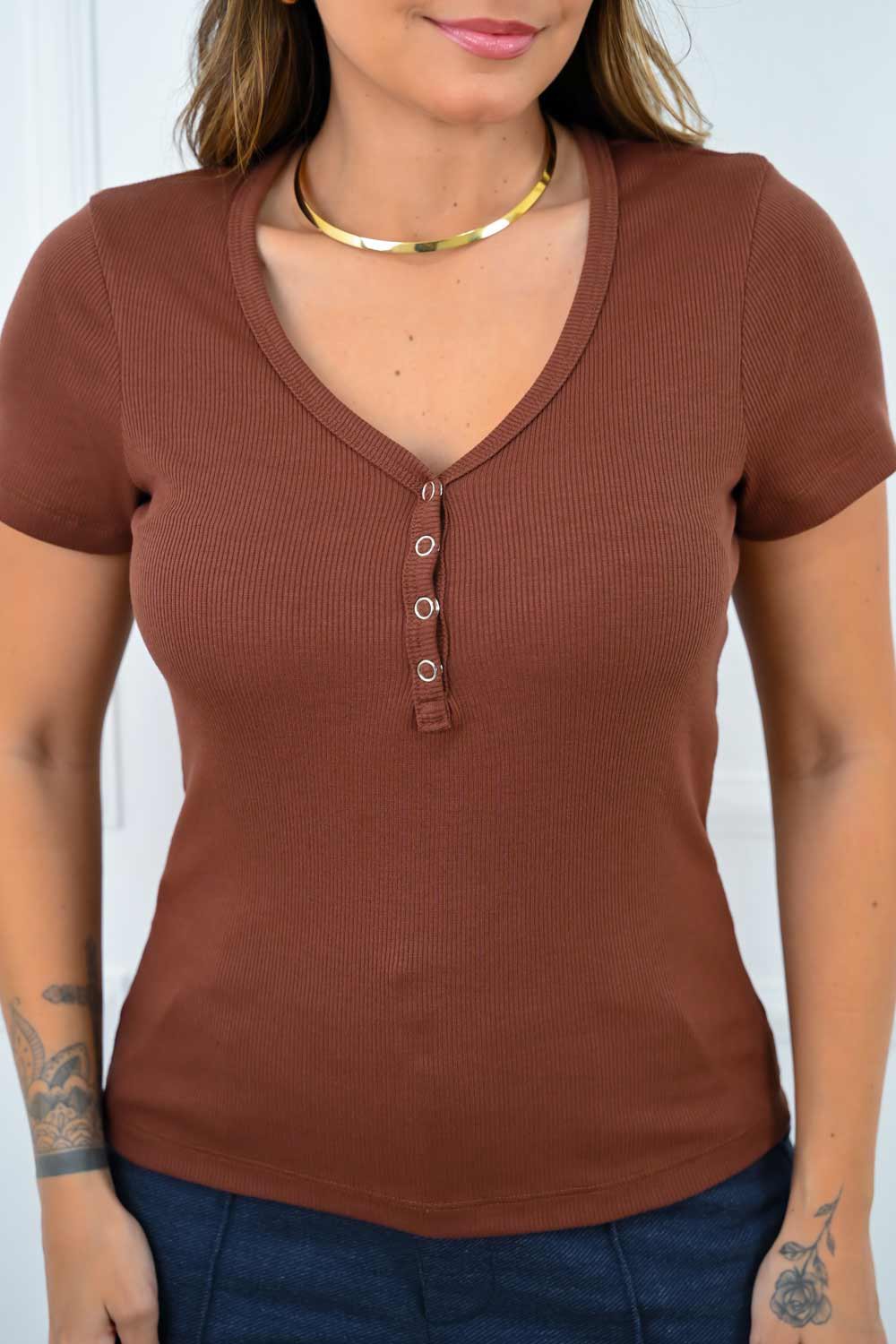 A Blusa Feminina de Ribana Bab é aquela peça essencial que une praticidade, feminilidade e charme na medida certa. Com tecido de ribana premium e toque leve, ela traz o equilíbrio perfeito entre o básico e o estiloso. O decote em V com botões funcionais confere um toque delicado e atual à peça, tornando-a ainda mais versátil para composições do dia a dia.