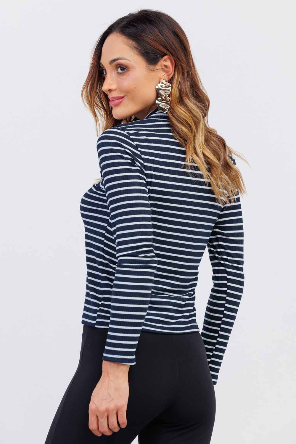BLUSA FEMININA LISTRADA ANDREIA AZUL MARINHO