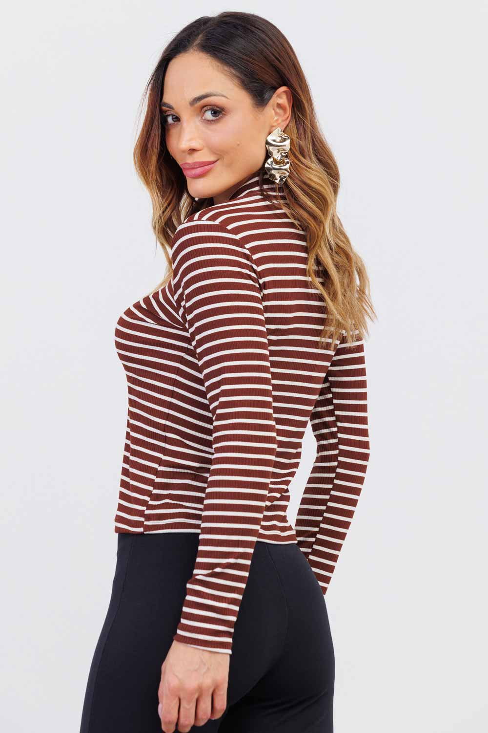 BLUSA FEMININA LISTRADA ANDREIA MARROM