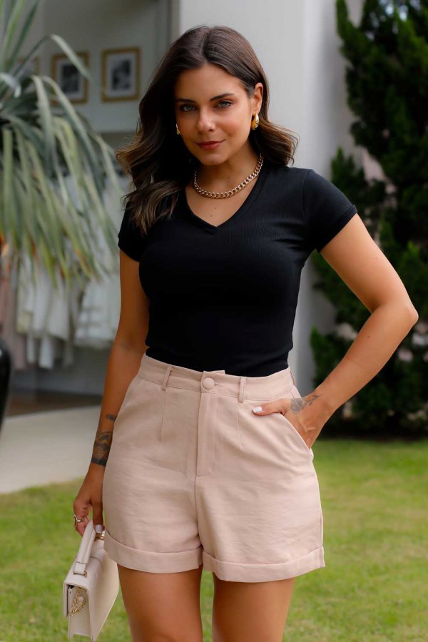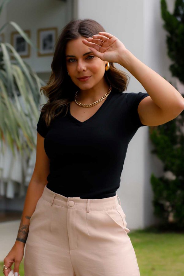 Blusa com decote V de ribana.