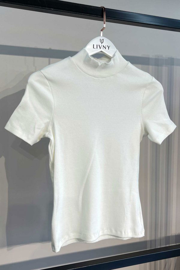 Com mangas curtas e gola alta, essa blusa é versátil para ser usada em diversas ocasiões.