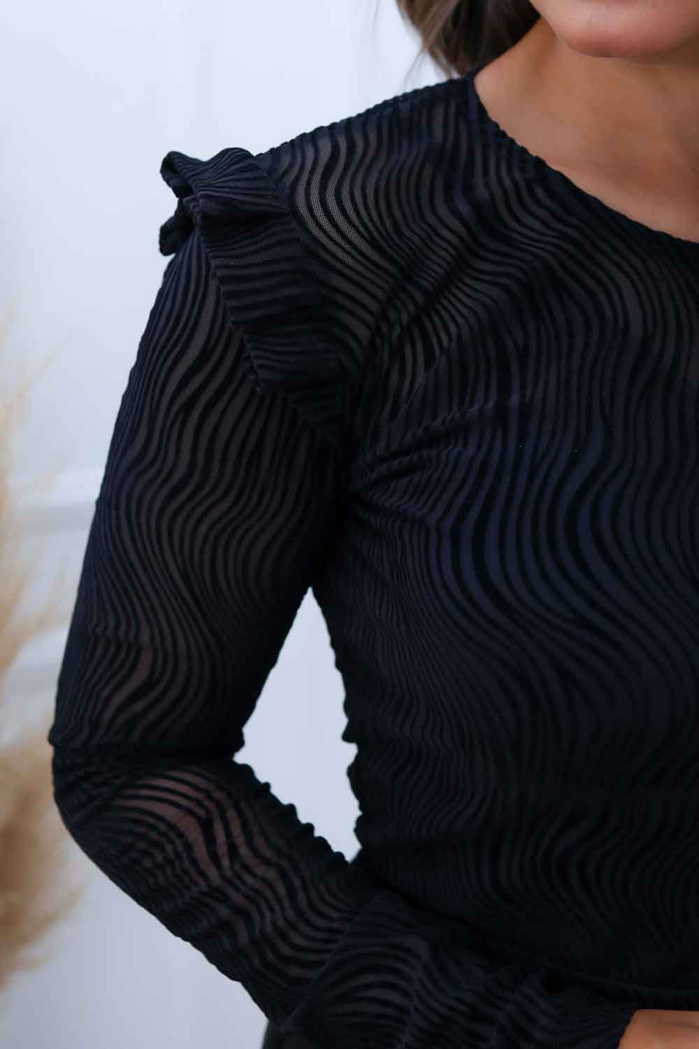 Ela é perfeita para quem busca um look sofisticado e versátil. Com babados delicados nas mangas e decote redondo, ela traz um toque romântico e moderno ao mesmo tempo. O tule, com sua leveza e transparência, é suavizado pela segunda peça de forro (regata), garantindo conforto e discrição. Essa blusa é ideal para diversas ocasiões, podendo ser usada tanto em produções casuais, com jeans, quanto em looks mais elegantes, combinada com saias ou calças de alfaiataria. A peça é um verdadeiro curinga no guarda-roupa feminino.