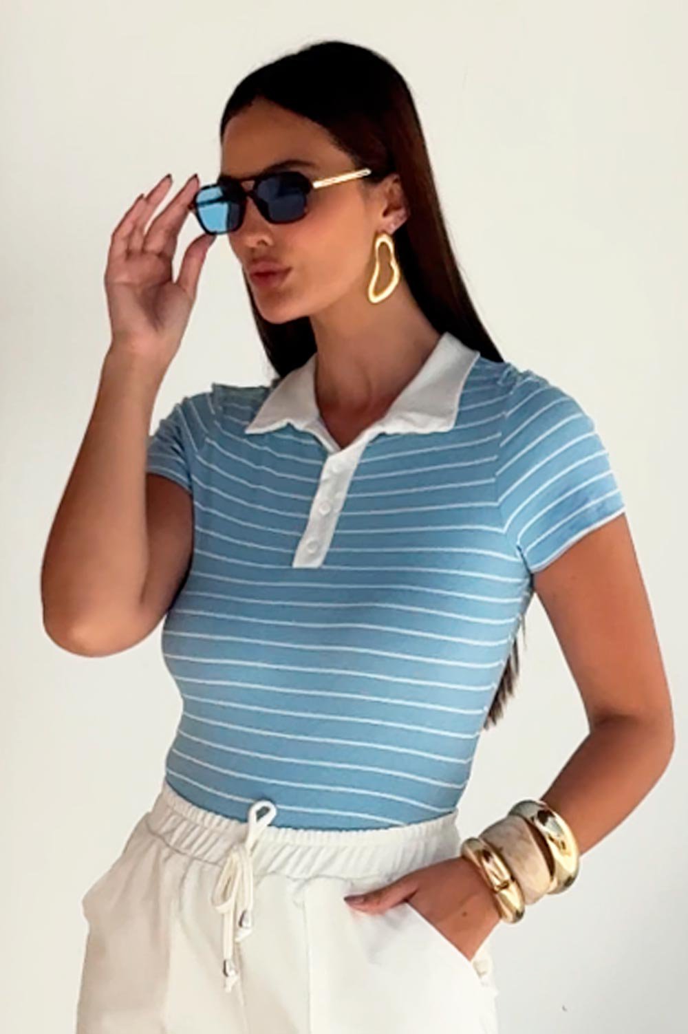 BLUSA LISTRADA FEMININA LUCI AZUL BEBÊ