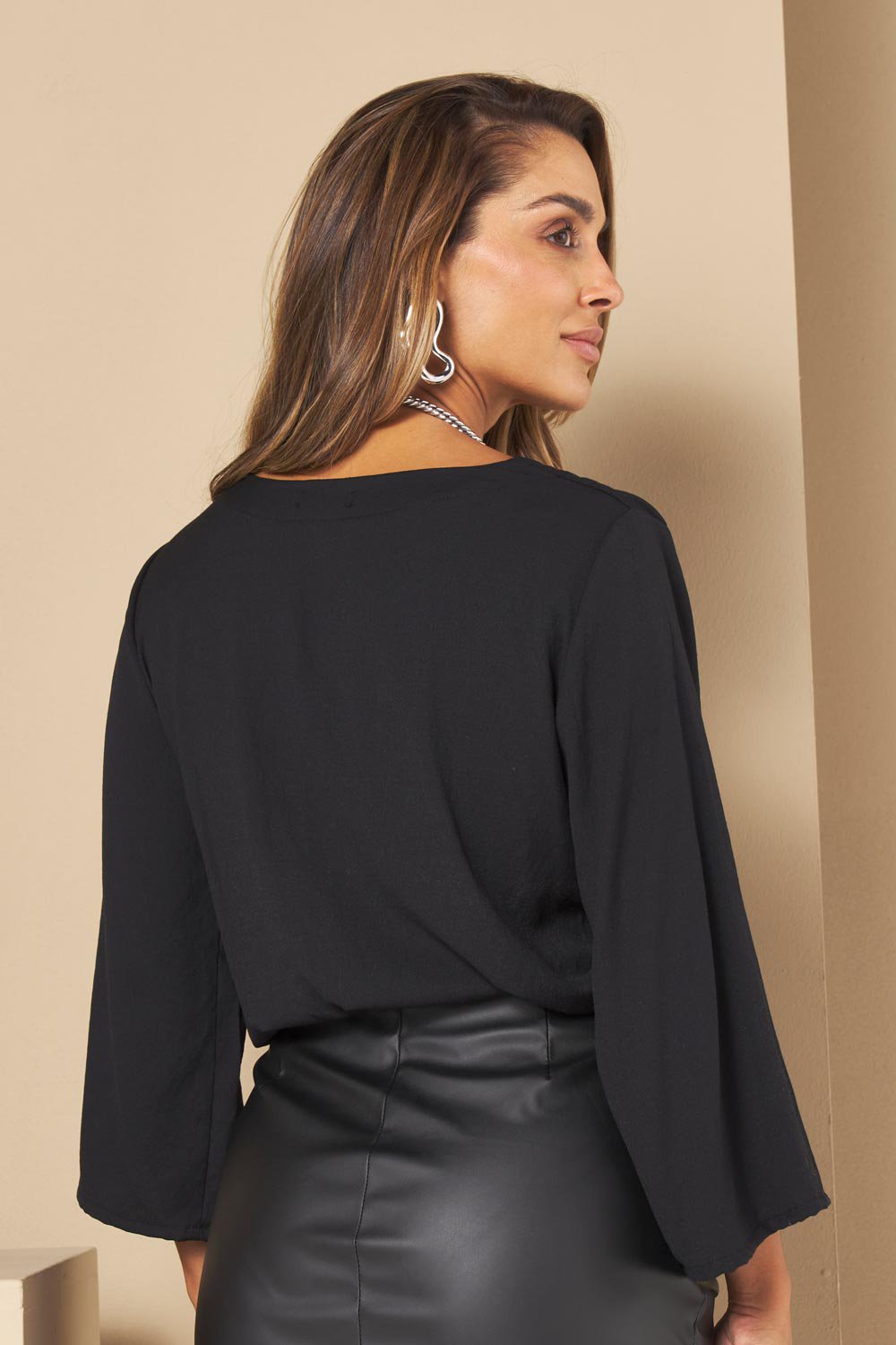 O Body Mara une conforto, elegância e modernidade em uma peça que valoriza a silhueta com delicadeza. Com decote transpassado e manga sino, ele é ideal para quem busca um visual feminino e marcante – seja para o dia ou para a noite.