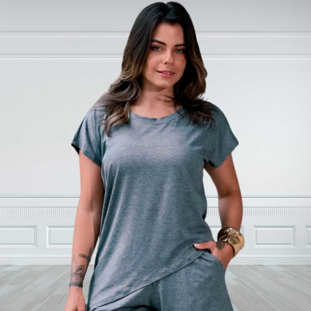 KIT 2 BLUSAS FEMININA VISCOLYCRA CAROLINE GRAFITE/MARINHO