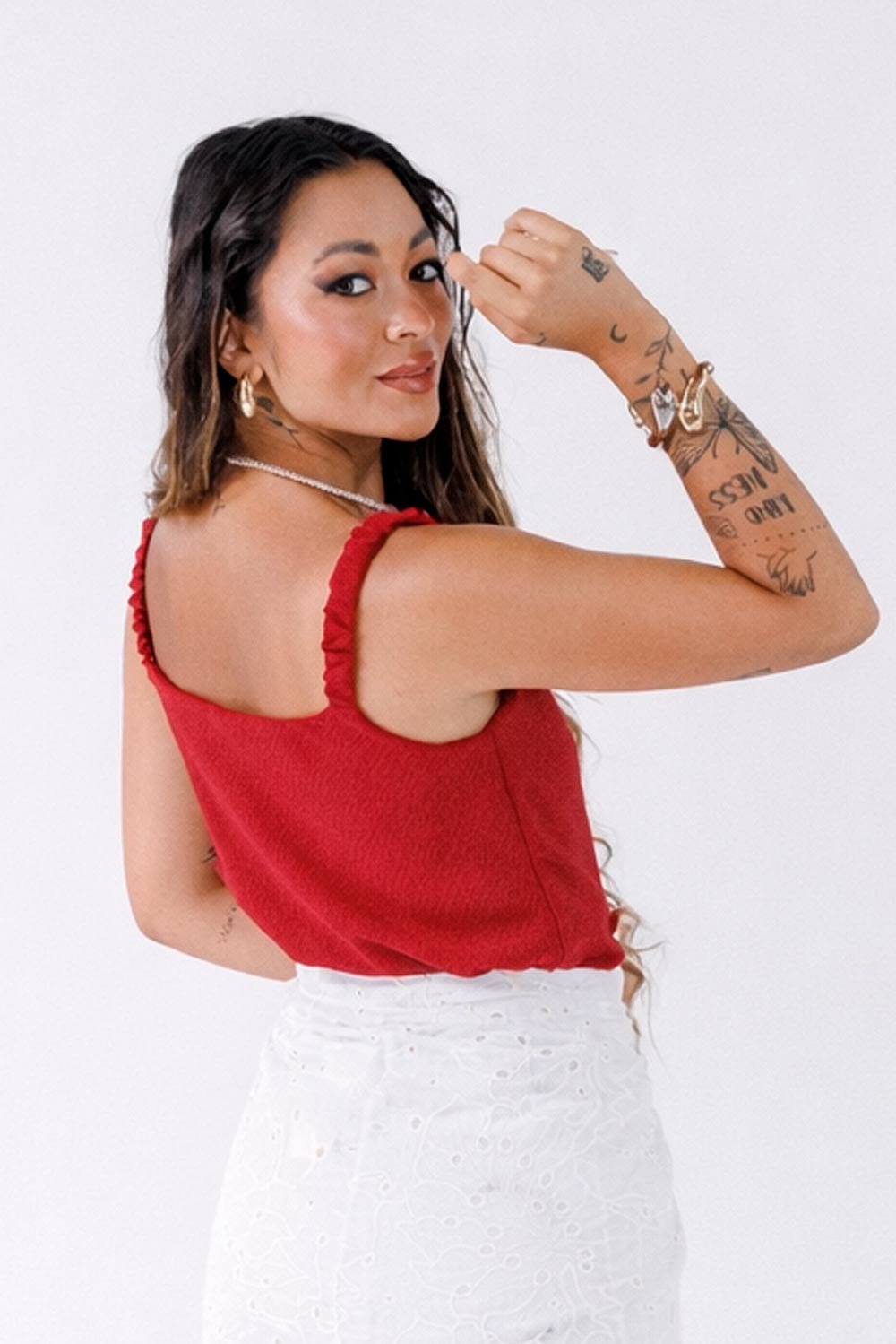Regata de Air Flow com alças franzidas.