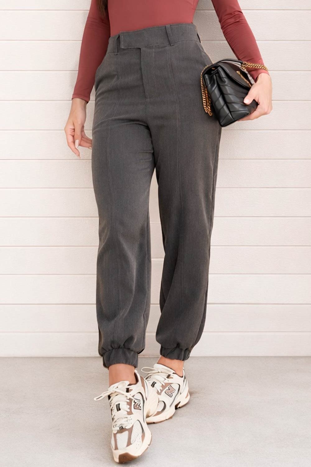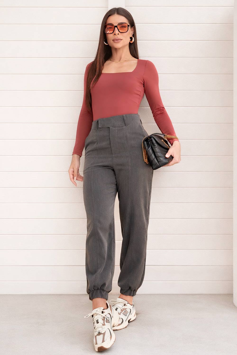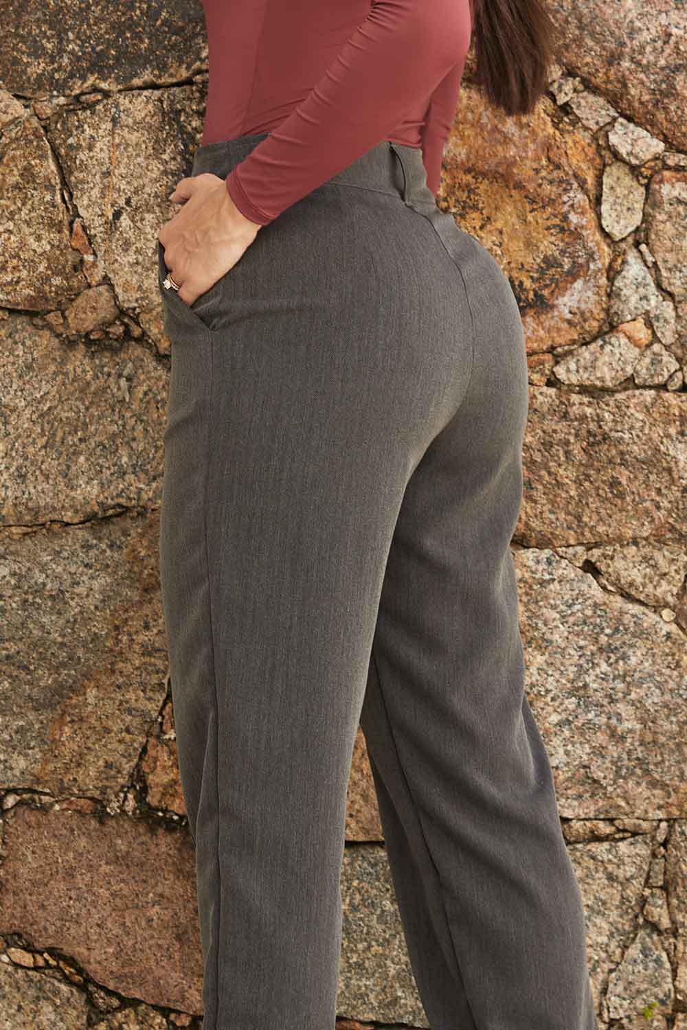 A Calça Alana é uma peça curinga no guarda-roupa. Combine com blusas ajustadas, camisas ou bodies para um visual elegante no trabalho, ou aposte em tênis e peças mais casuais para um look urbano moderno.