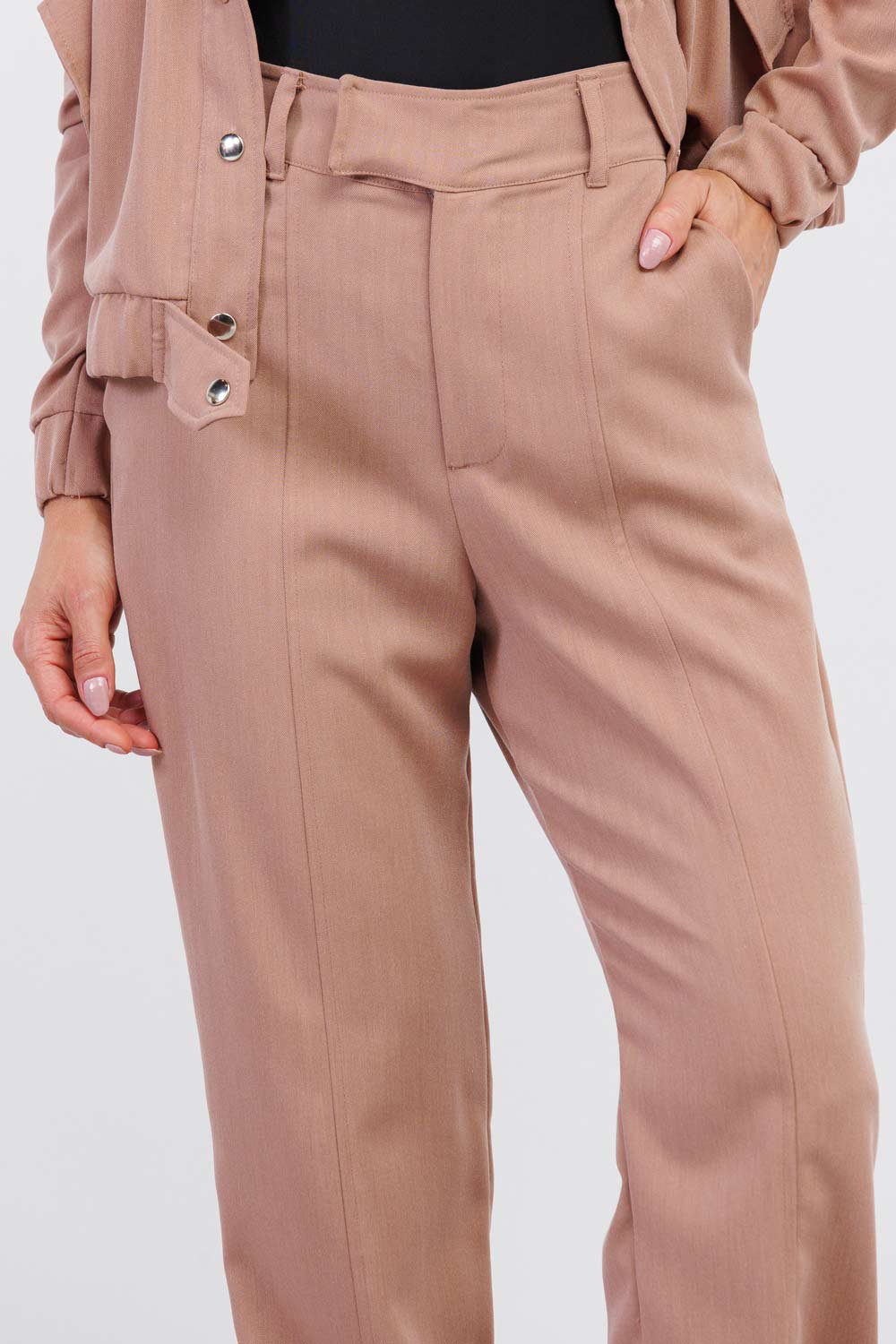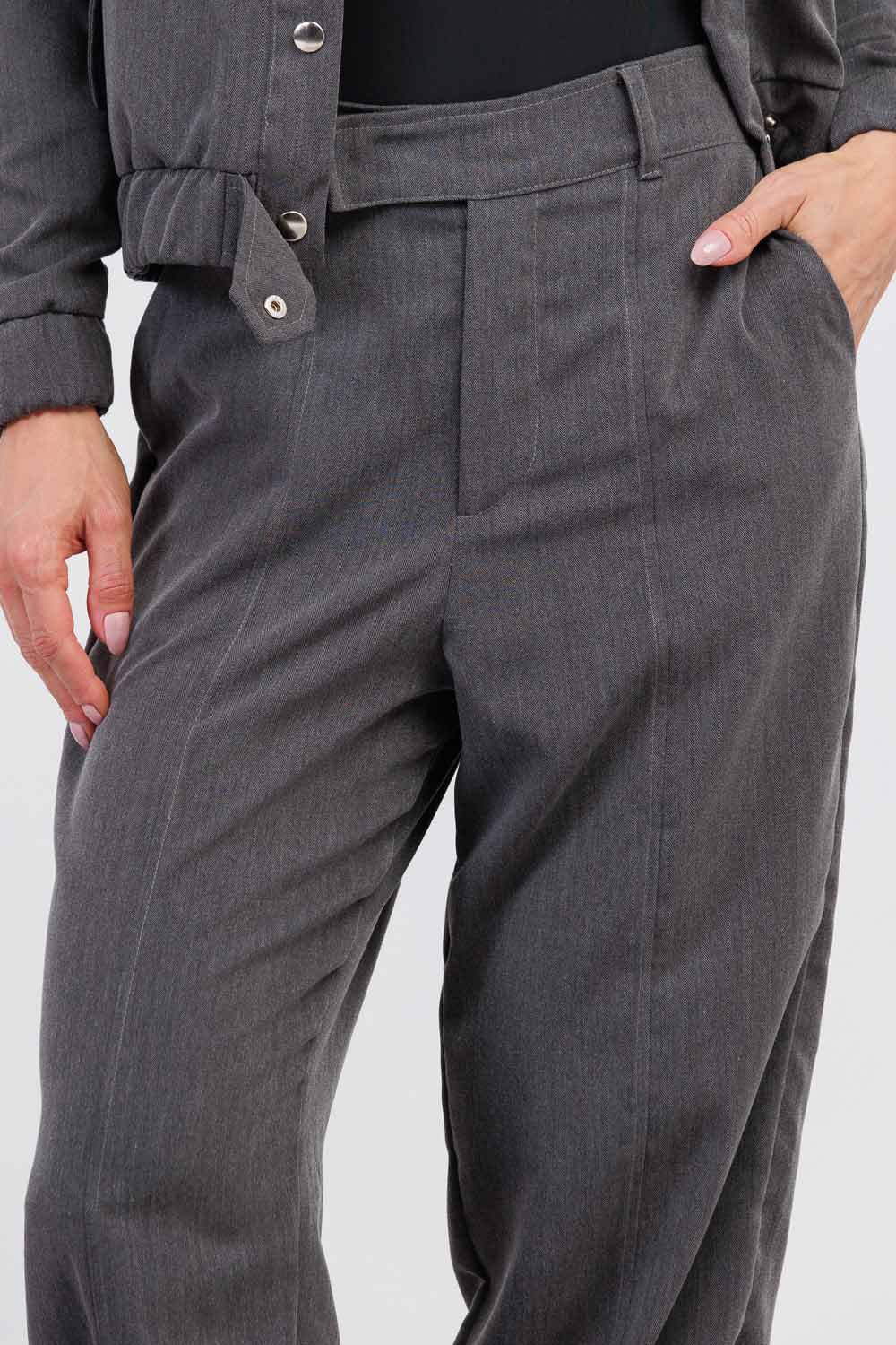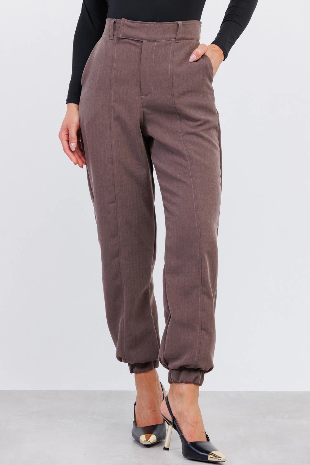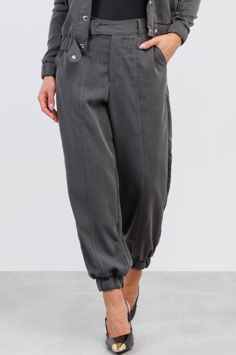 Confeccionada em tecido leve e confortável, a peça possui cintura estruturada que valoriza a silhueta e proporciona um caimento alinhado. A modelagem com leve afunilamento e elástico no tornozelo traz um toque contemporâneo à alfaiataria clássica, criando um visual atual e extremamente prático.