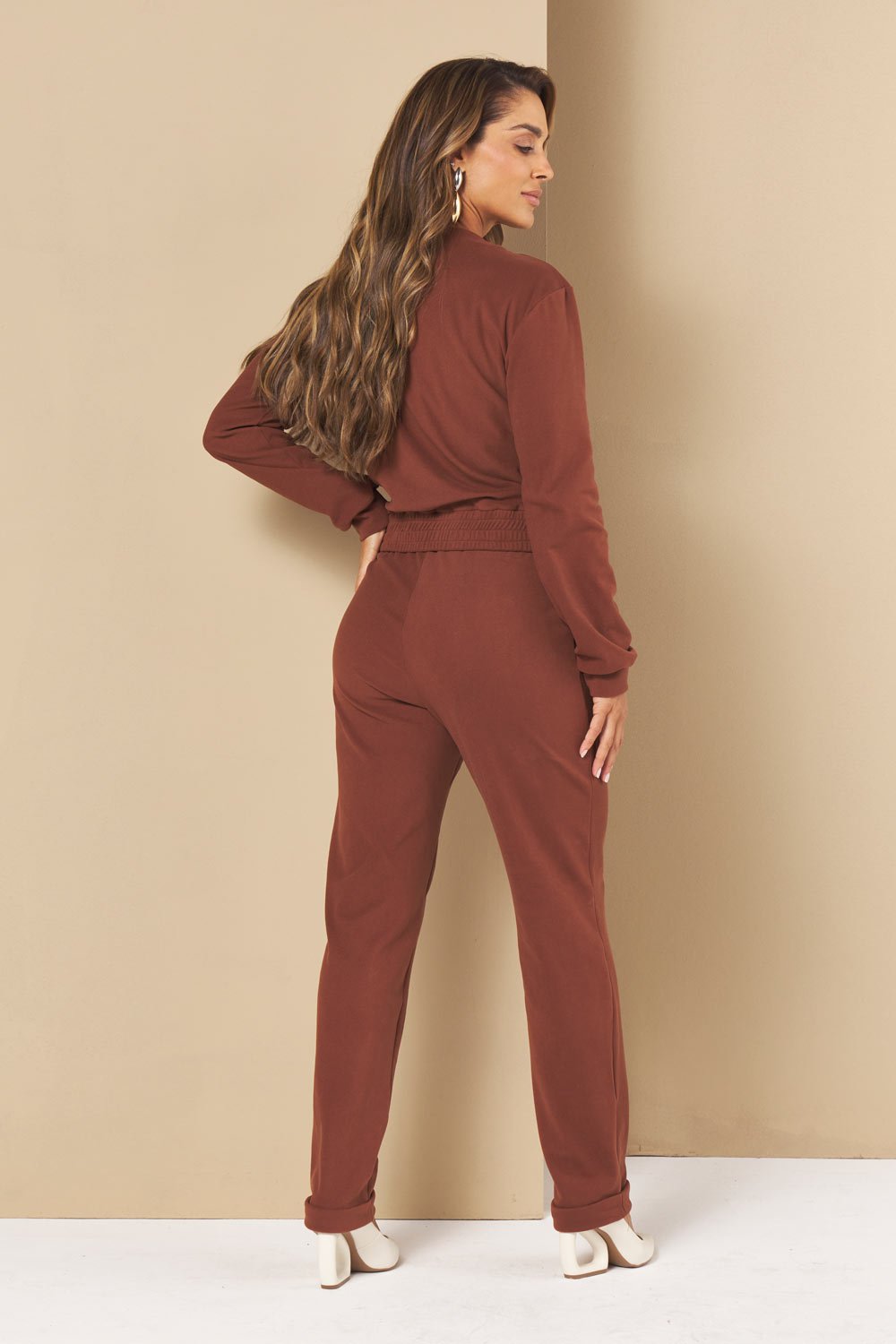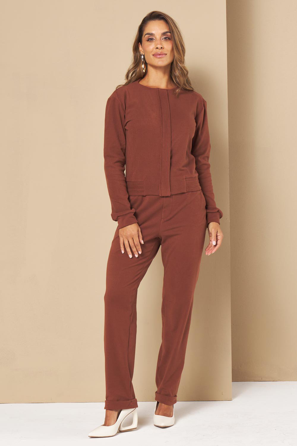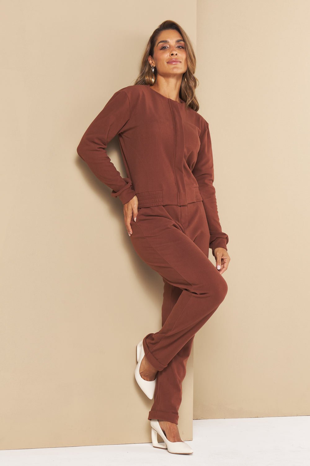 Combinando perfeitamente com tênis, botas ou salto, o Conjunto Itália é ideal para diversas ocasiões: trabalho, passeios ou compromissos casuais com um toque de sofisticação. A jaqueta com zíper embutido e a calça com recorte frontal trazem equilíbrio entre conforto e estilo.
