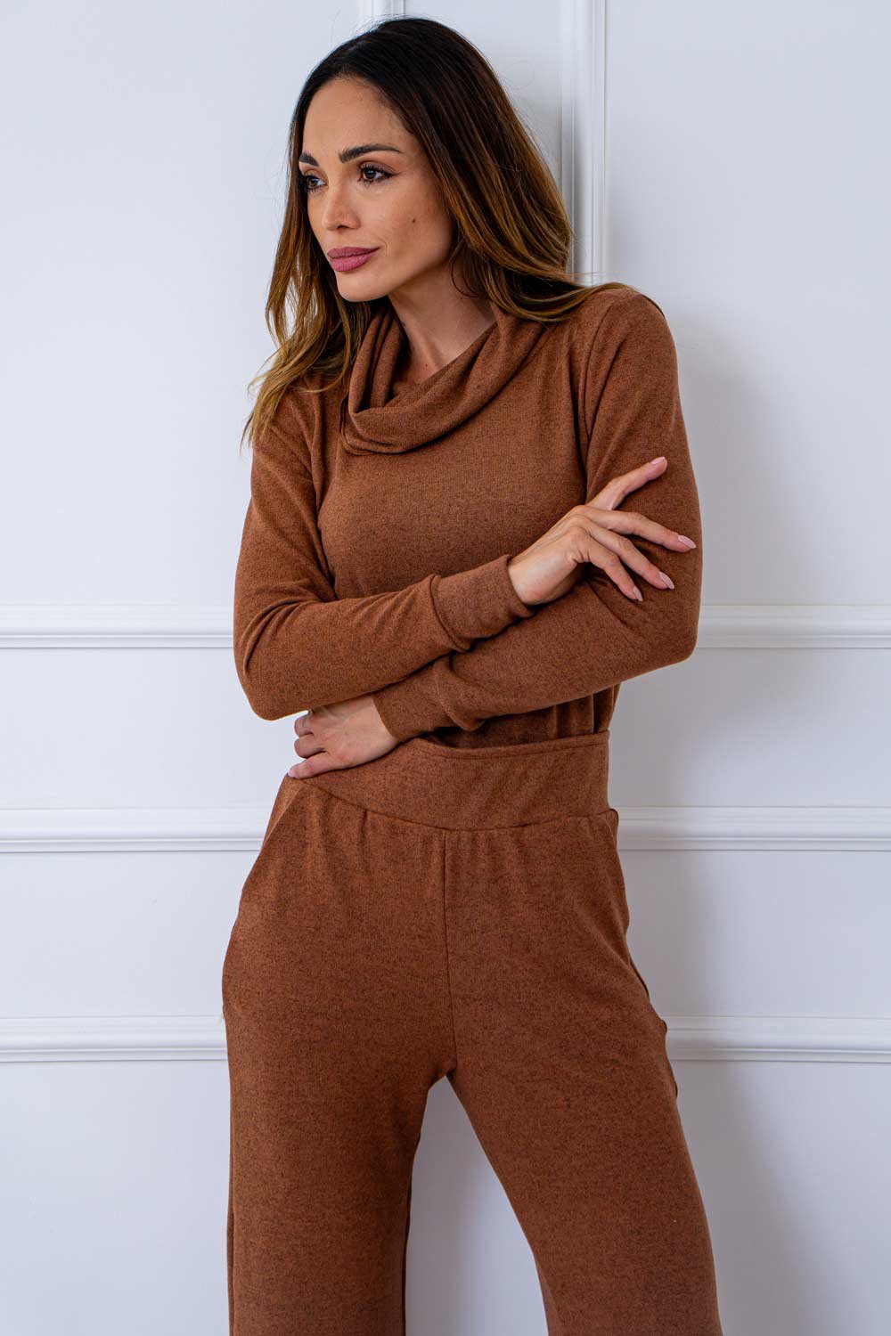 O Conjunto Fiorela traduz elegância e conforto em uma proposta sofisticada e atual. Confeccionado em lãzinha macia, ele oferece toque suave, caimento impecável e um visual refinado perfeito para os dias mais amenos. A blusa possui gola alta elegante e modelagem ajustada que valoriza a silhueta, enquanto a calça traz modelagem reta e alongada, criando um look moderno e extremamente versátil.