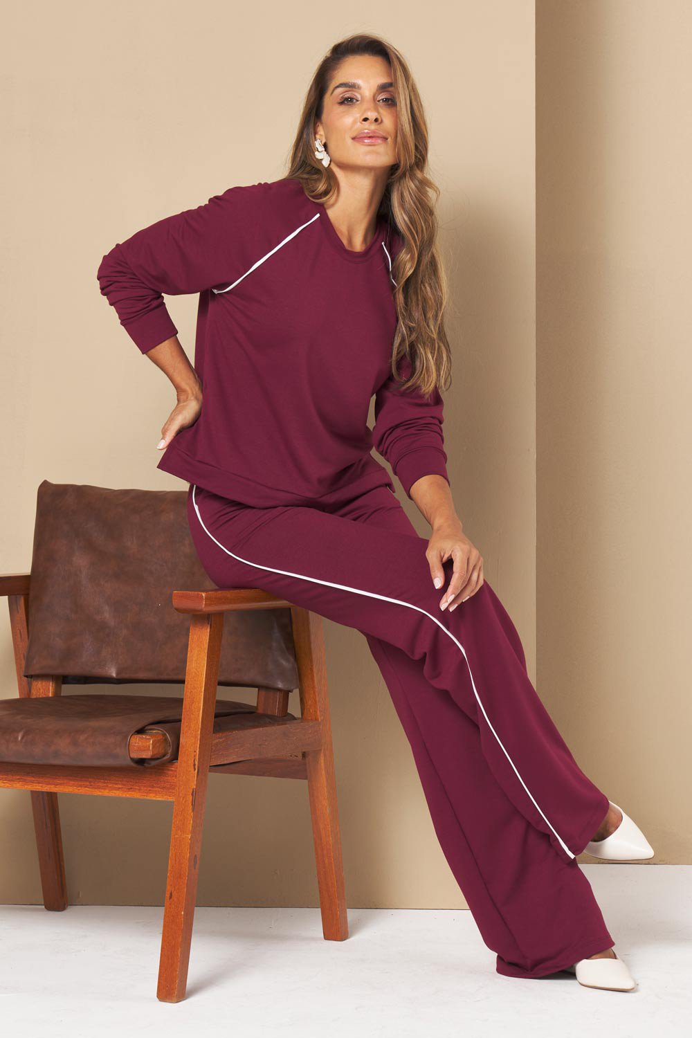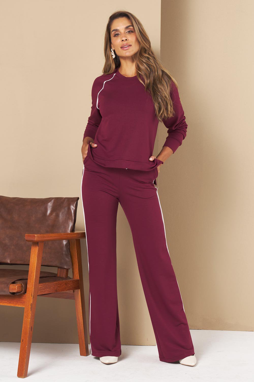 O Conjunto Francisca combina o toque macio do molecotton com o visual esportivo chic. As faixas laterais em contraste trazem um ar moderno e ajudam a alongar a silhueta. Um conjunto versátil para te acompanhar no trabalho, em passeios casuais ou viagens – basta alternar os acessórios para mudar o mood.
