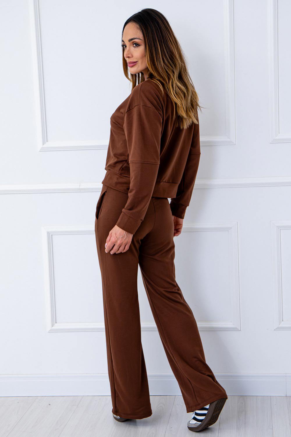 O Conjunto Djeni é a escolha ideal para quem busca conforto com um visual moderno e elegante. Confeccionado em molecotton encorpado, ele oferece toque macio, caimento estruturado e liberdade de movimento. Composto por jaqueta e calça Pantalona, é um conjunto versátil que acompanha perfeitamente a rotina, equilibrando praticidade e estilo.