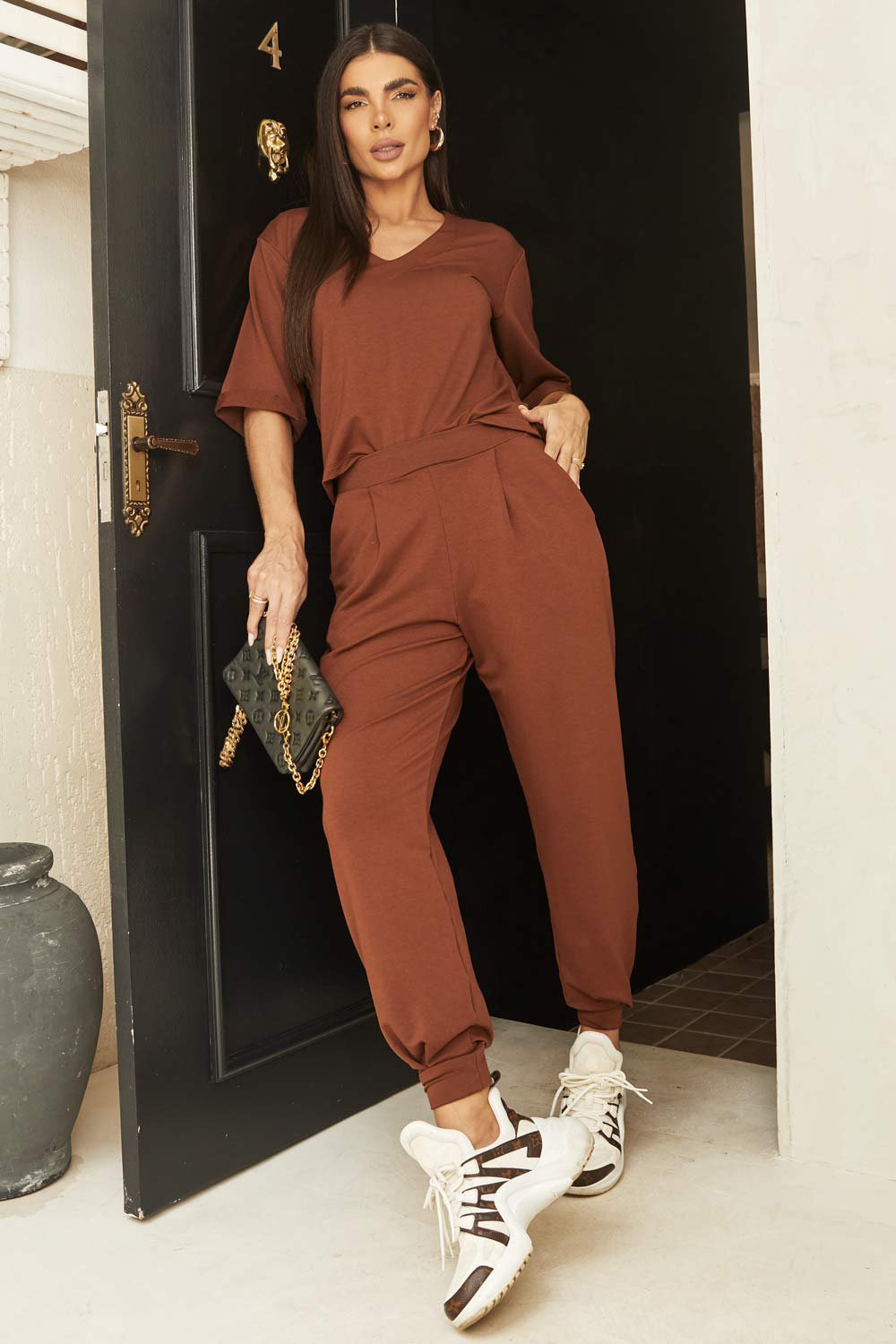 O Conjunto Betty foi criado para unir conforto absoluto com um visual moderno e elegante. Confeccionado em molecotton macio, ele proporciona um caimento impecável e toque extremamente confortável. A blusa possui modelagem soltinha com decote em V, enquanto a calça jogger traz cintura marcada e barras ajustadas, criando um look atual e versátil para diferentes momentos.