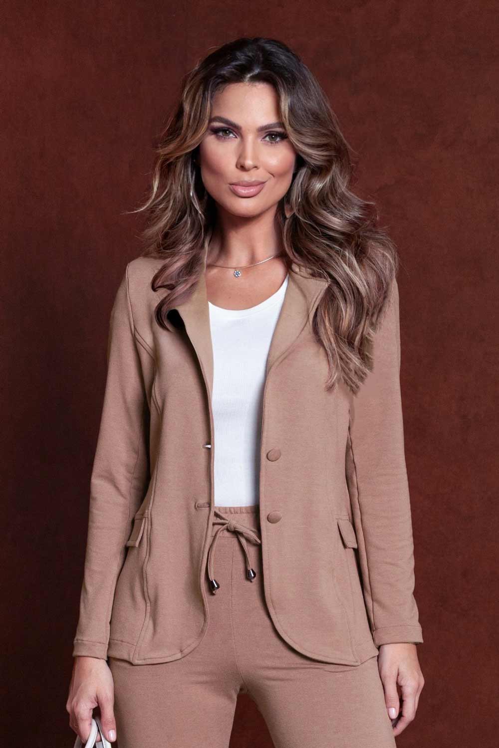 Aposte no blazer molecotton Ana Lia para elevar seu visual com conforto, estilo e versatilidade. Uma peça essencial para compor produções atemporais e cheias de personalidade.