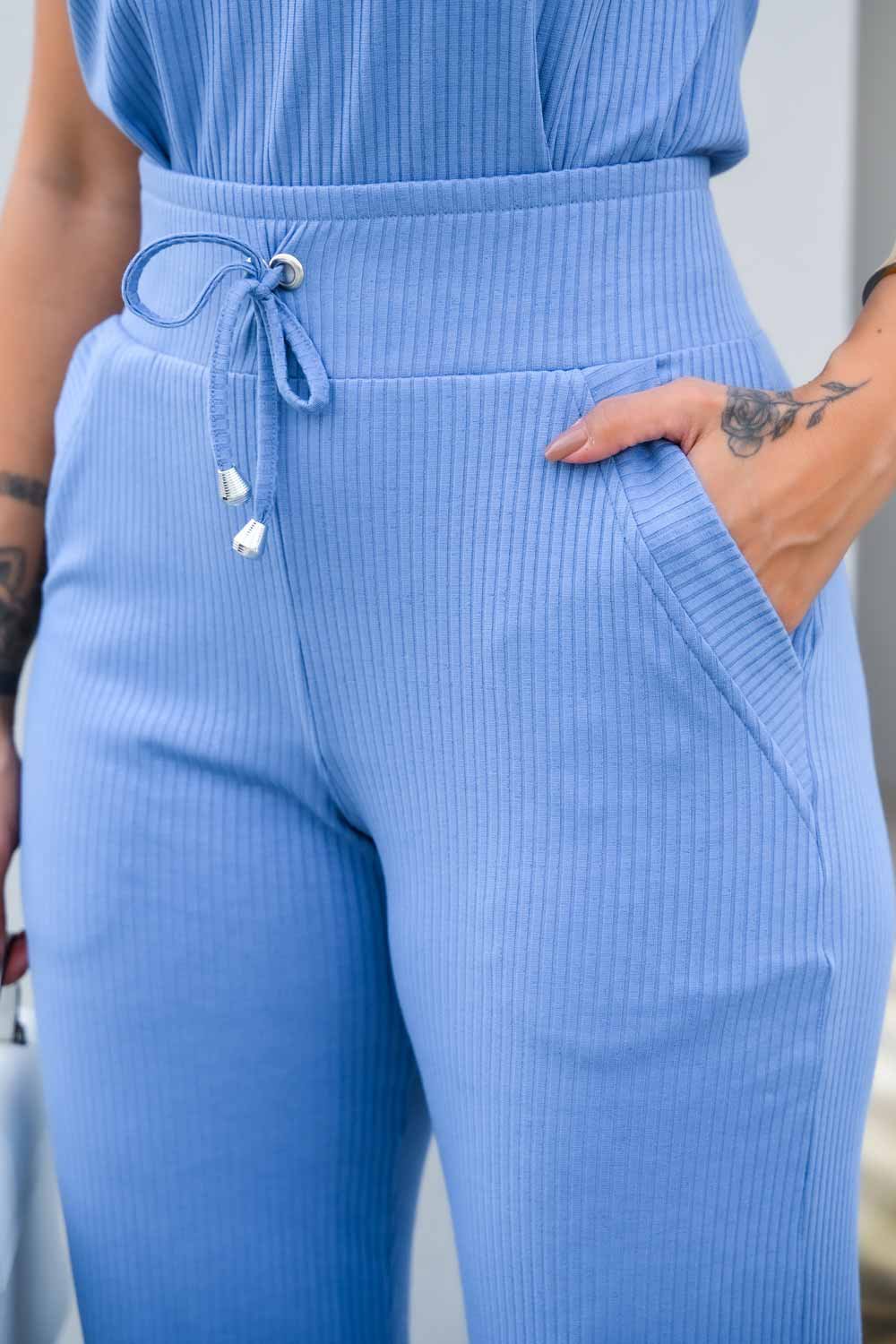 O Conjunto Mery é ideal para quem busca praticidade com estilo no dia a dia. Com blusa decote V e calça com elástico e amarração decorativo, ele oferece liberdade nos movimentos e um visual moderno. Confeccionado em malha canelada com elasticidade na medida certa, garante conforto térmico e um caimento impecável.