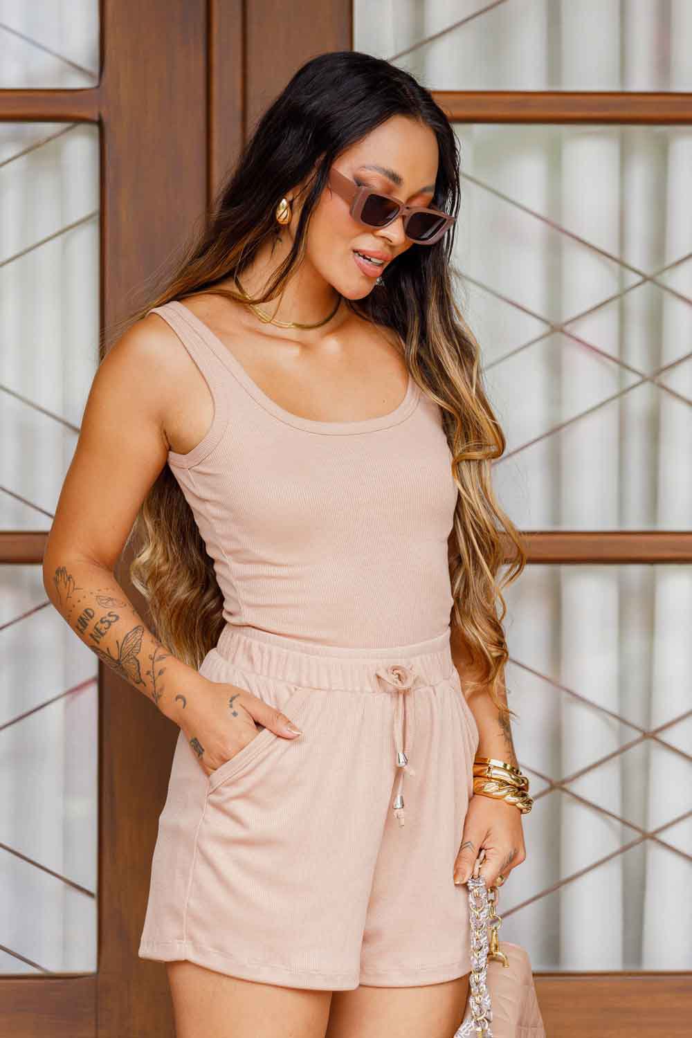 O conjunto feminino de ribana paulinha é a escolha perfeita para quem busca novidades e estilo. O design moderno e confortável se adapta a diferentes graças, seja para um passeio casual, para o dia a dia ou até mesmo para atividades ao ar livre. O bolso no shorts adiciona funcionalidade, enquanto o cadarço decorativo traz um toque de sofisticação. A regata complementar é leve e fresca, garantindo liberdade de movimento e elegante.