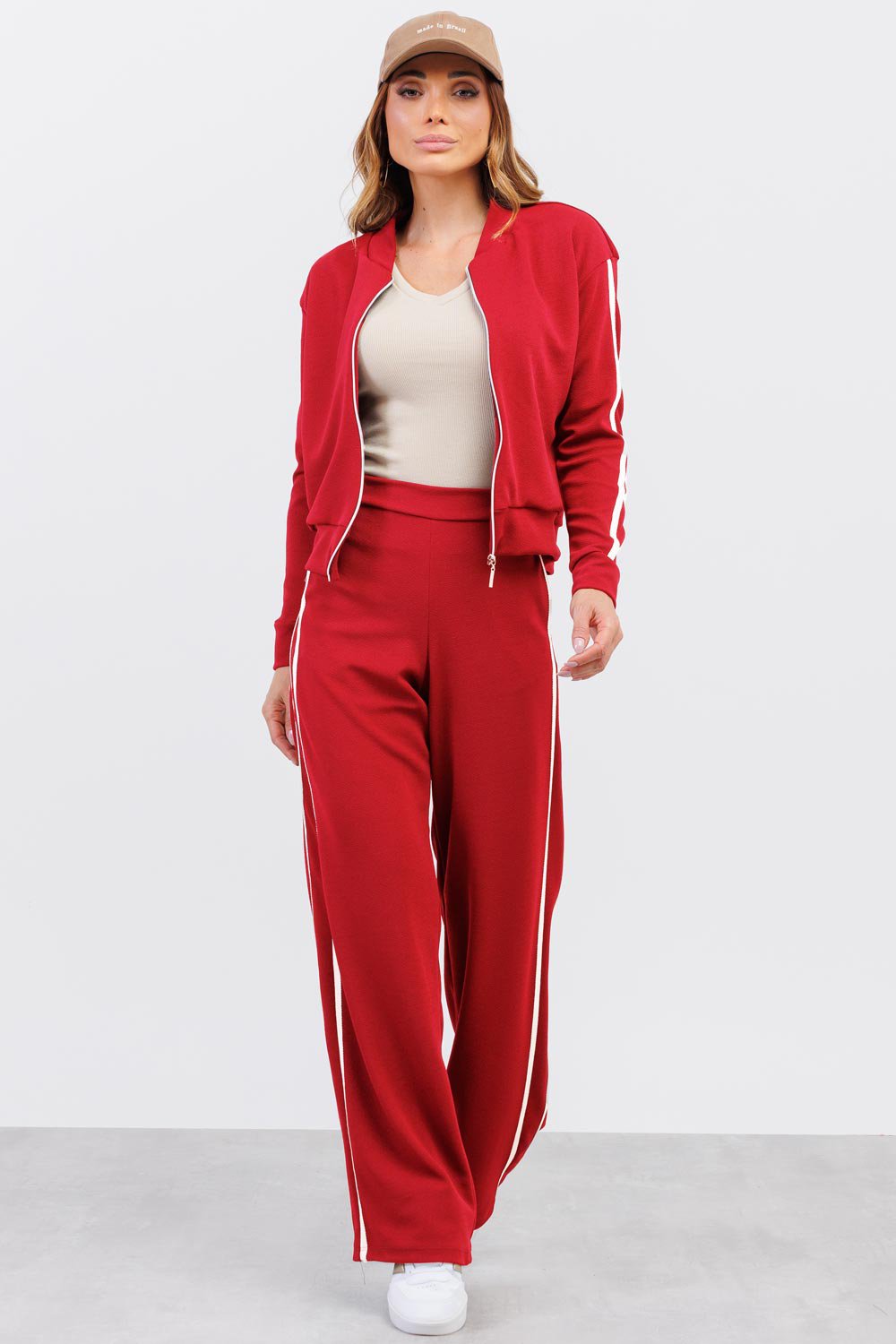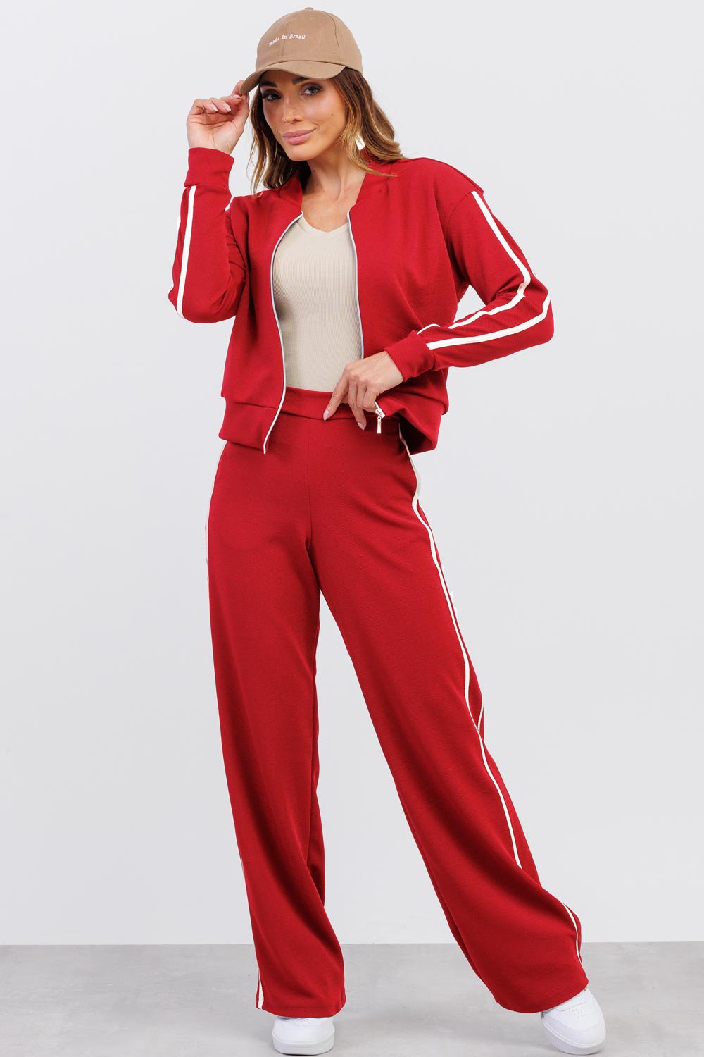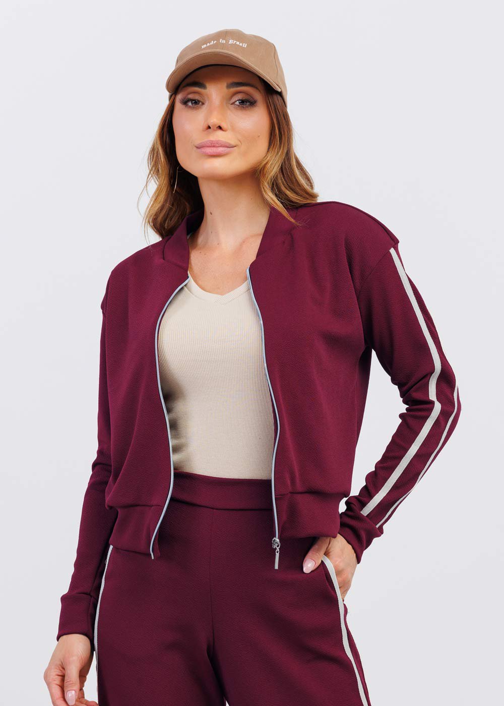 O Conjunto Helena é a escolha perfeita para quem busca um visual moderno e elegante sem abrir mão do bem-estar. Confeccionado em malha encorpada de toque macio, ele é composto por jaqueta com zíper frontal e calça de modelagem reta, ambas com detalhes em listras laterais que alongam a silhueta e garantem um ar esportivo chic.