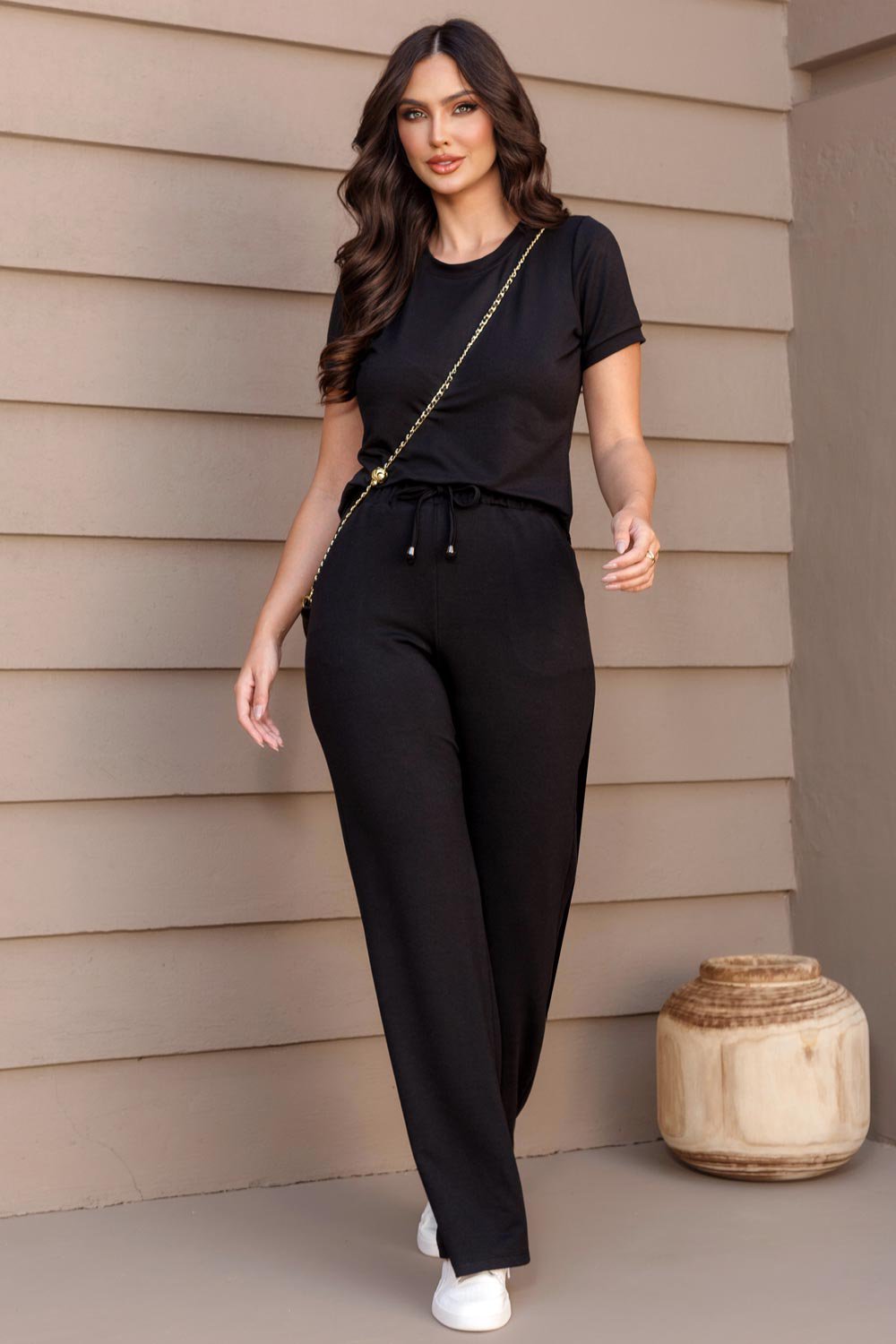 O Conjunto Grazi é a definição de look curinga: transita facilmente entre ocasiões casuais, produções de trabalho ou até aquele passeio de fim de semana. Sua modelagem clean permite infinitas combinações com jaquetas, acessórios e diferentes calçados. Além disso, o tom neutro traz modernidade e elegância ao visual.