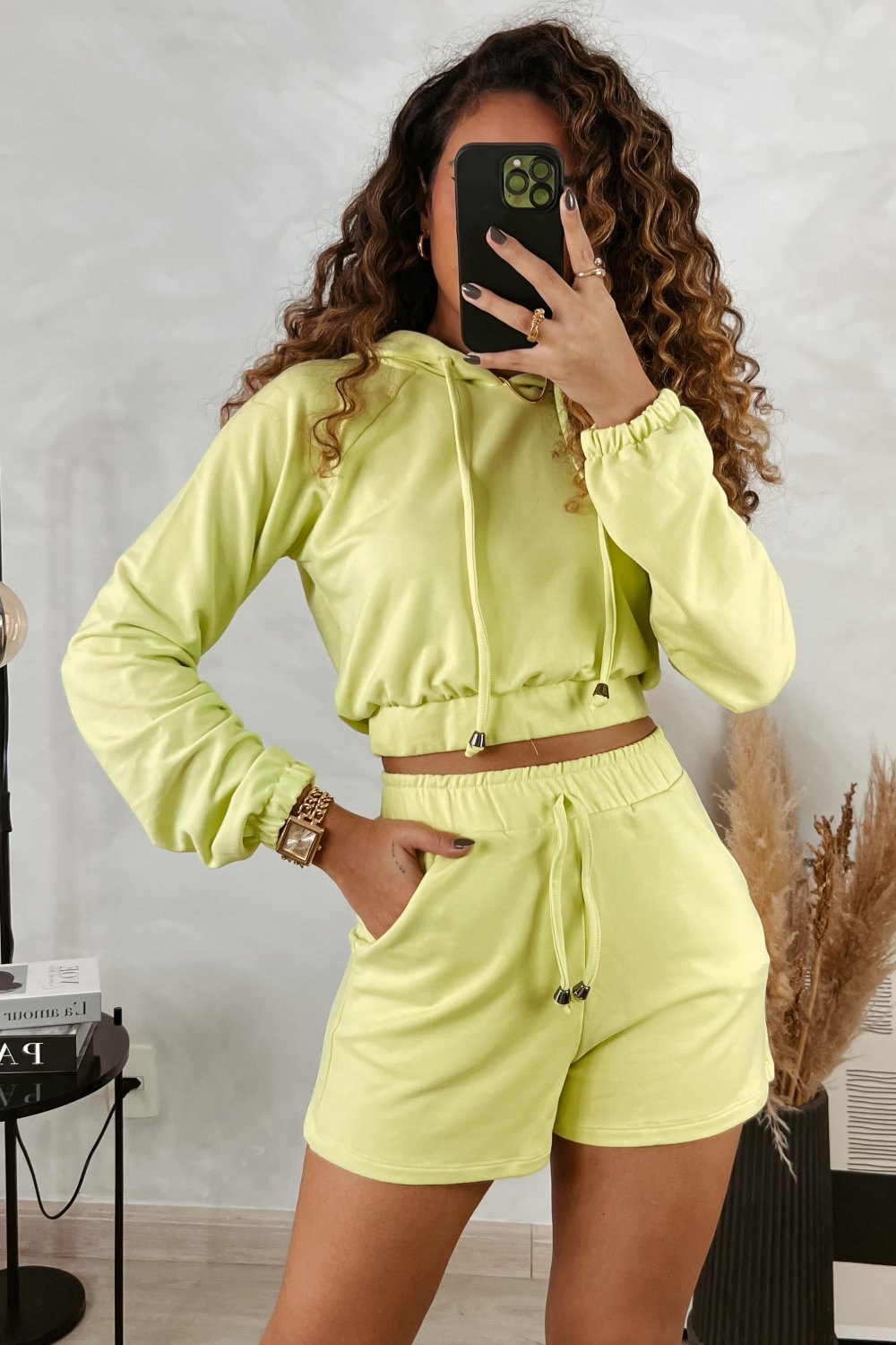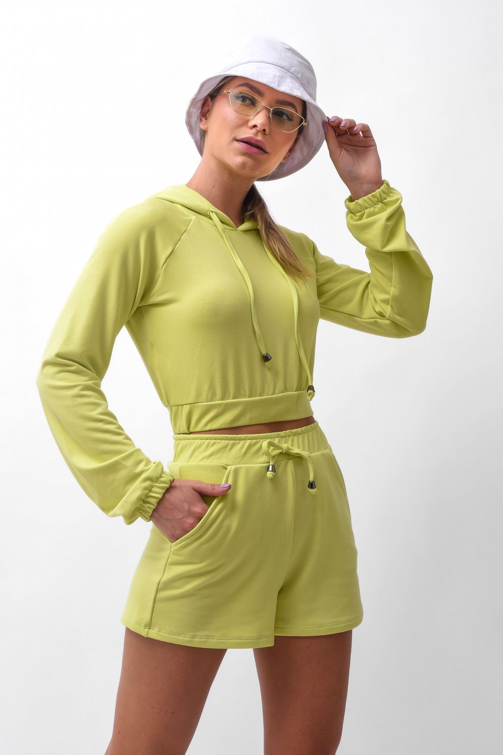 Este conjunto de molecotton é composto por blusa cropped e shorts.