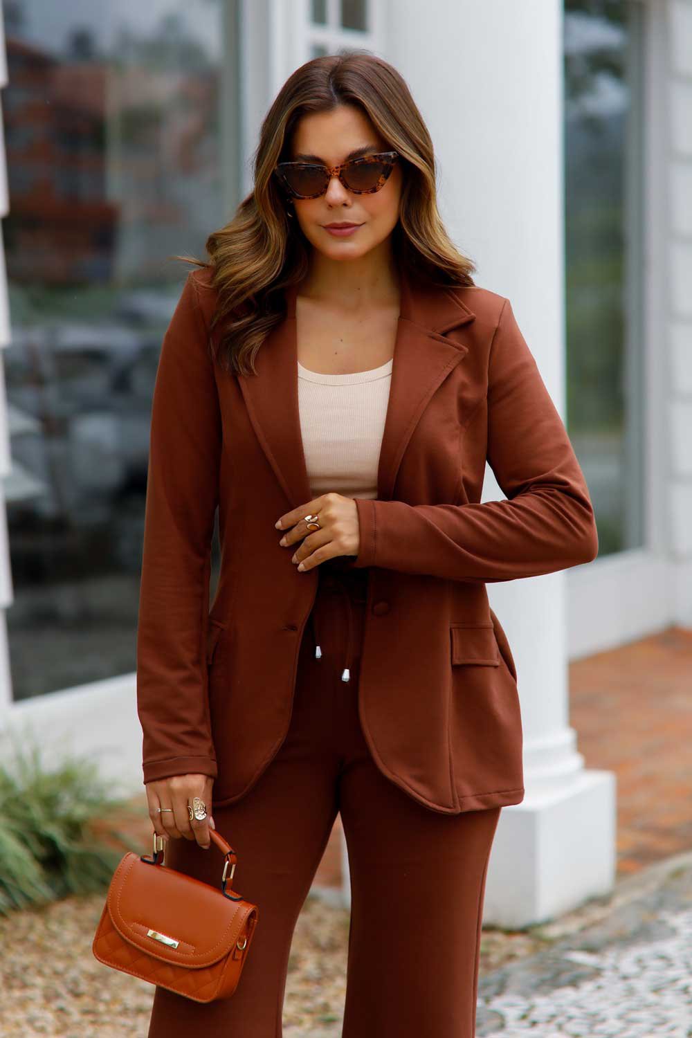 O conjunto com blazer Luka permite combinações variadas: use com tênis e camiseta para um look urbano e moderno ou com salto e acessórios para uma proposta mais elegante. É uma peça-chave para quem quer praticidade e estilo no mesmo visual.