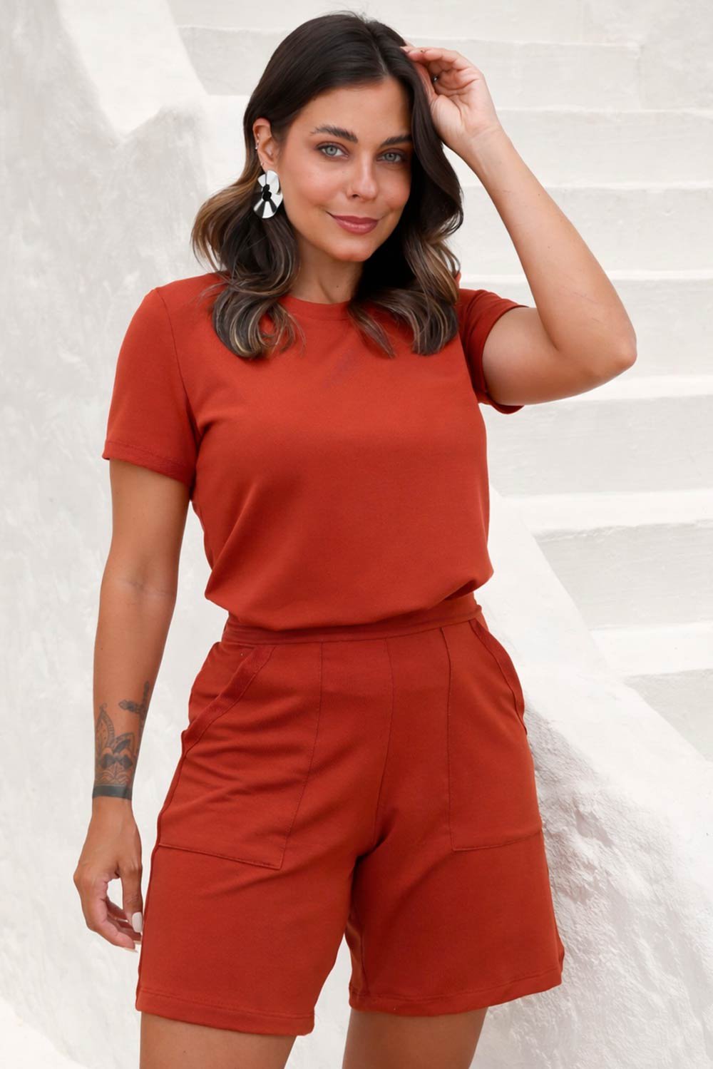 O conjunto Valéria é a escolha certa para quem busca conforto e um visual moderno em qualquer ocasião. A blusa de molecotton com manga curta e o short mais comprido, com bolsos e elástico na cintura, entregam caimento perfeito com aquele toque despojado que você ama.