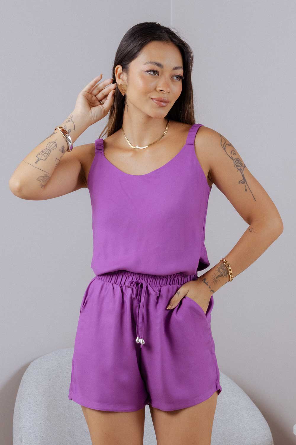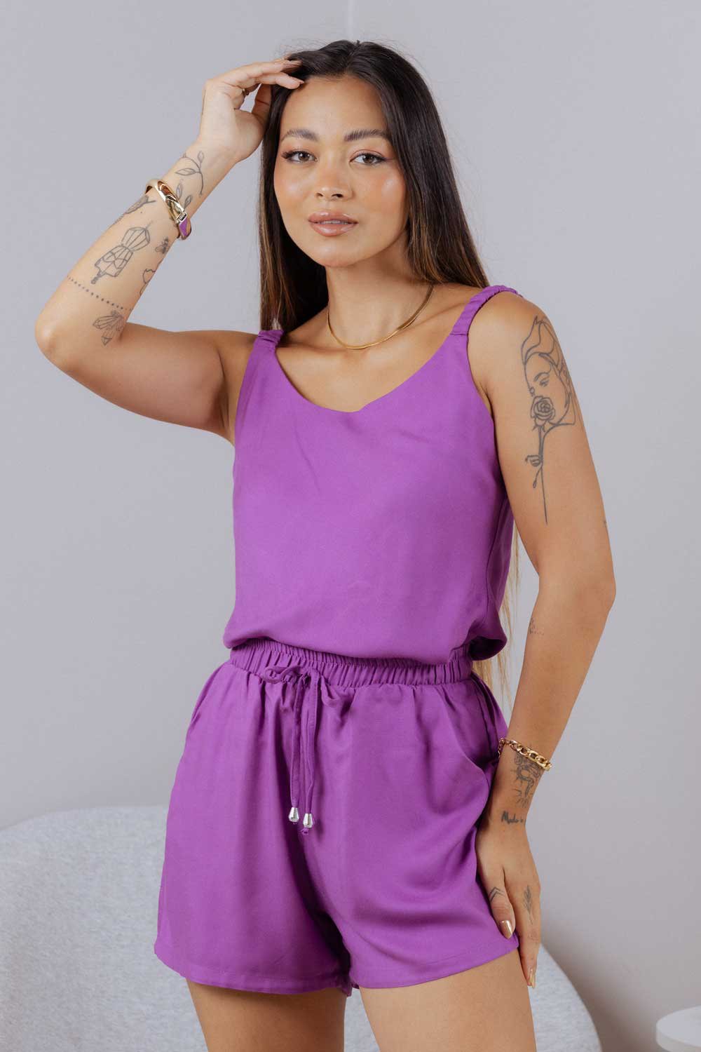 Esse look pode ser facilmente adaptado para diferentes contextos: do passeio ao ar livre à um encontro descontraído, ou até mesmo um dia mais informal no trabalho. A combinação de peças frescas e confortáveis com detalhes de design inteligente faz dele uma opção versátil, que vai bem com tênis, sandálias ou até um salto dependendo da ocasião.