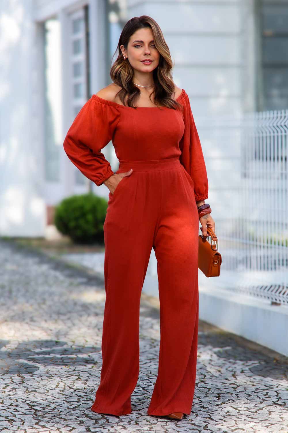 CONJUNTO FEMININO RIBANA TEXTURIZADA BIA TERRACOTA