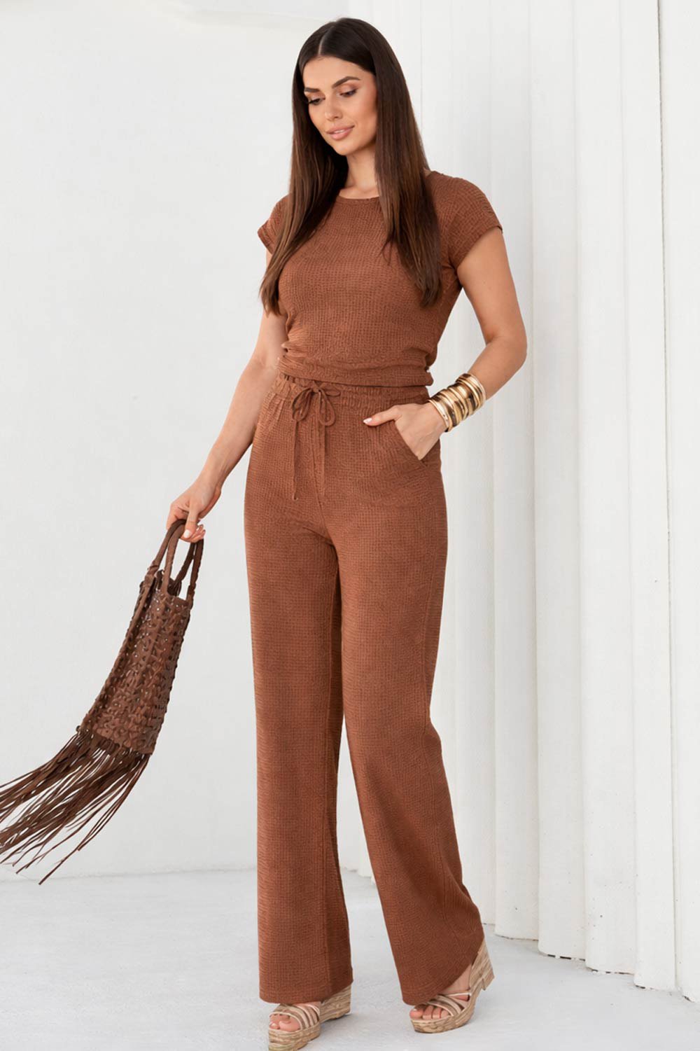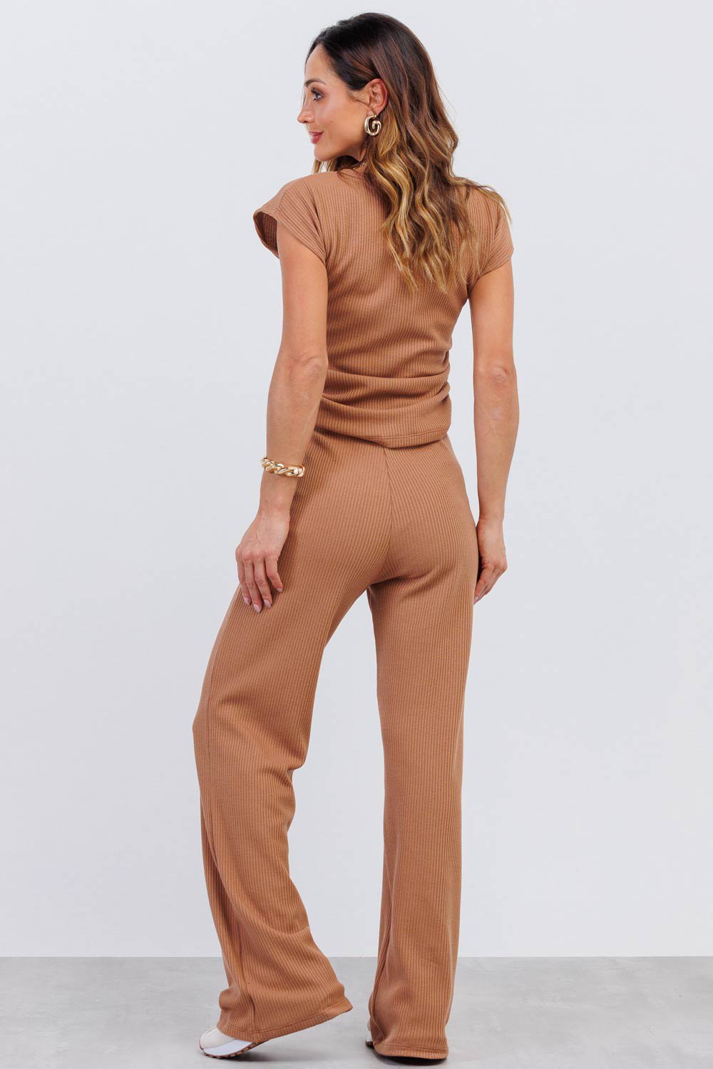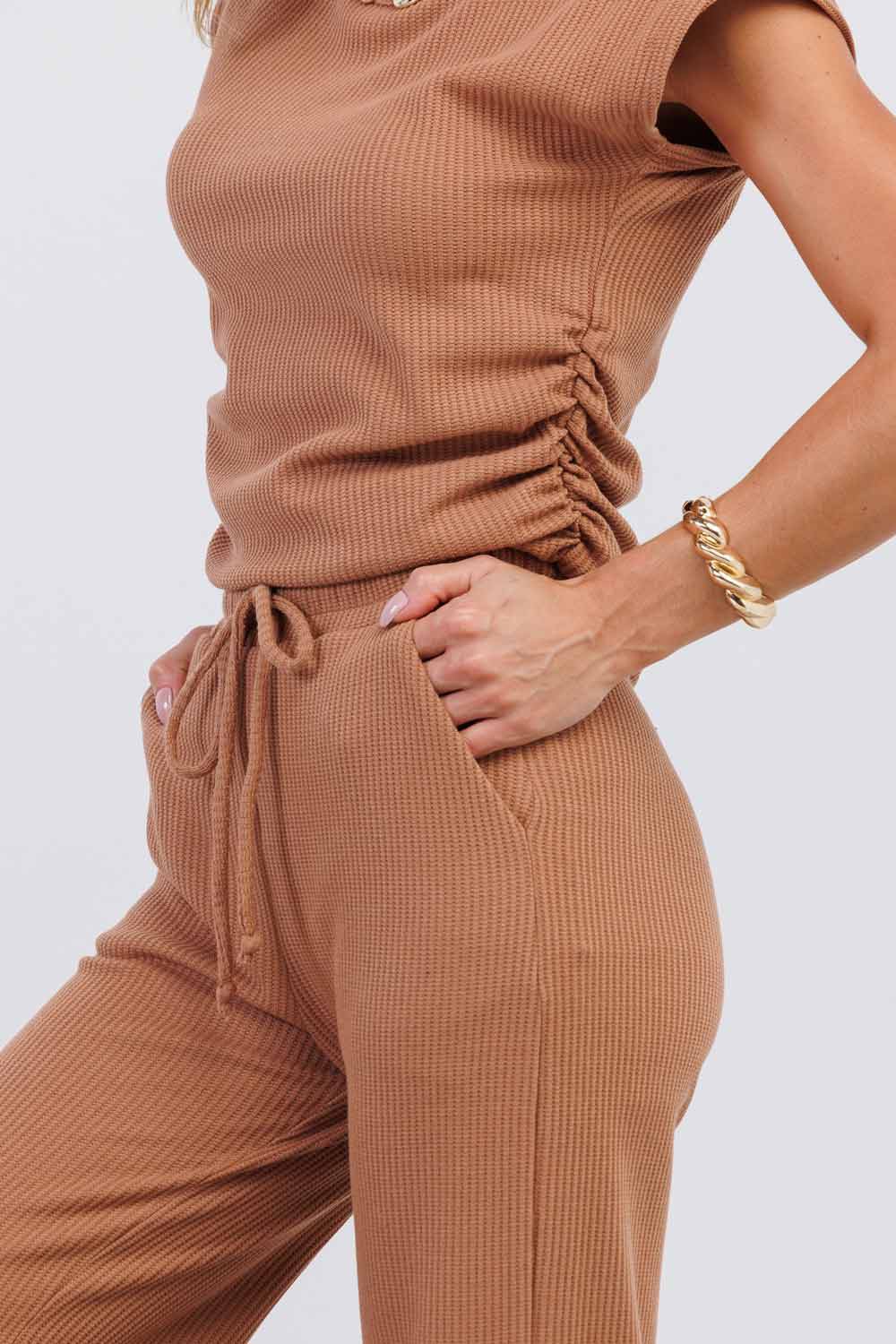 O Conjunto Vegas é a escolha certa para quem busca praticidade e elegância no dia a dia. Confeccionado em malha canelada encorpada, ele entrega conforto extremo com toque moderno. A blusa possui modelagem ajustada com detalhe franzido nas laterais, enquanto a calça tem caimento reto, cós com amarração e bolsos funcionais.