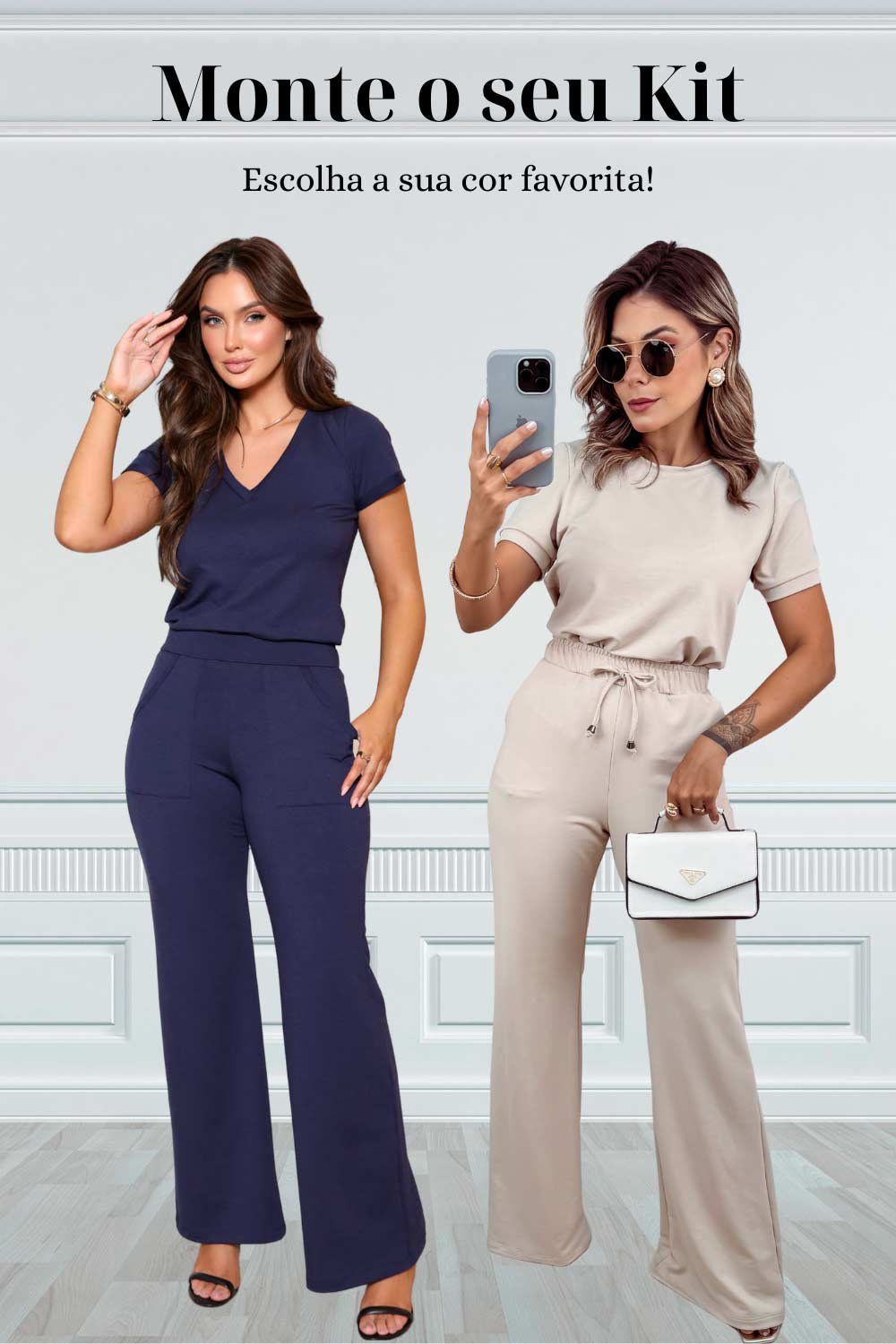 O Conjunto Meg é ideal para quem quer praticidade e estilo no mesmo look. Feito em molecotton macio, a blusa com decote em V valoriza o colo e garante um toque moderno. A calça reta com bolsos frontais adiciona funcionalidade sem abrir mão da elegância — perfeita para acompanhar a rotina com charme e conforto.