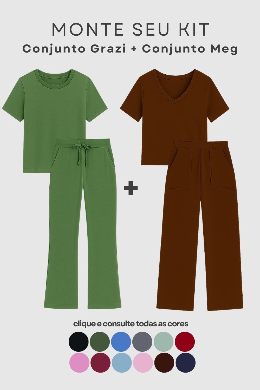 O Conjunto Meg é ideal para quem quer praticidade e estilo no mesmo look. Feito em molecotton macio, a blusa com decote em V valoriza o colo e garante um toque moderno. A calça reta com bolsos frontais adiciona funcionalidade sem abrir mão da elegância — perfeita para acompanhar a rotina com charme e conforto.