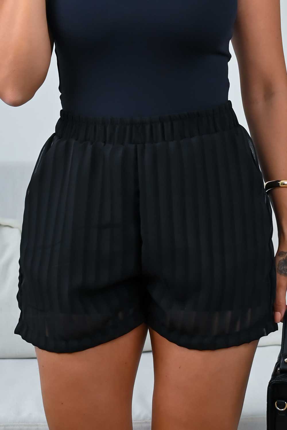 Shorts feminino com tecido de crepe listrado