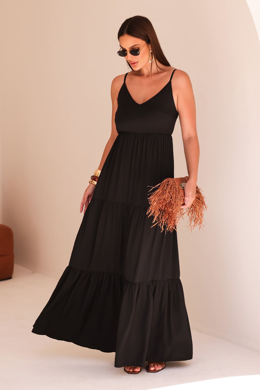 O Vestido Jéssica é sinônimo de leveza e elegância natural. Com modelagem longa e fluida, ele traz aquele movimento delicado que transforma qualquer ocasião em um momento especial. As alças finas e o decote em V garantem um visual feminino e sofisticado, ideal para os dias de sol ou para momentos que pedem conforto com charme.