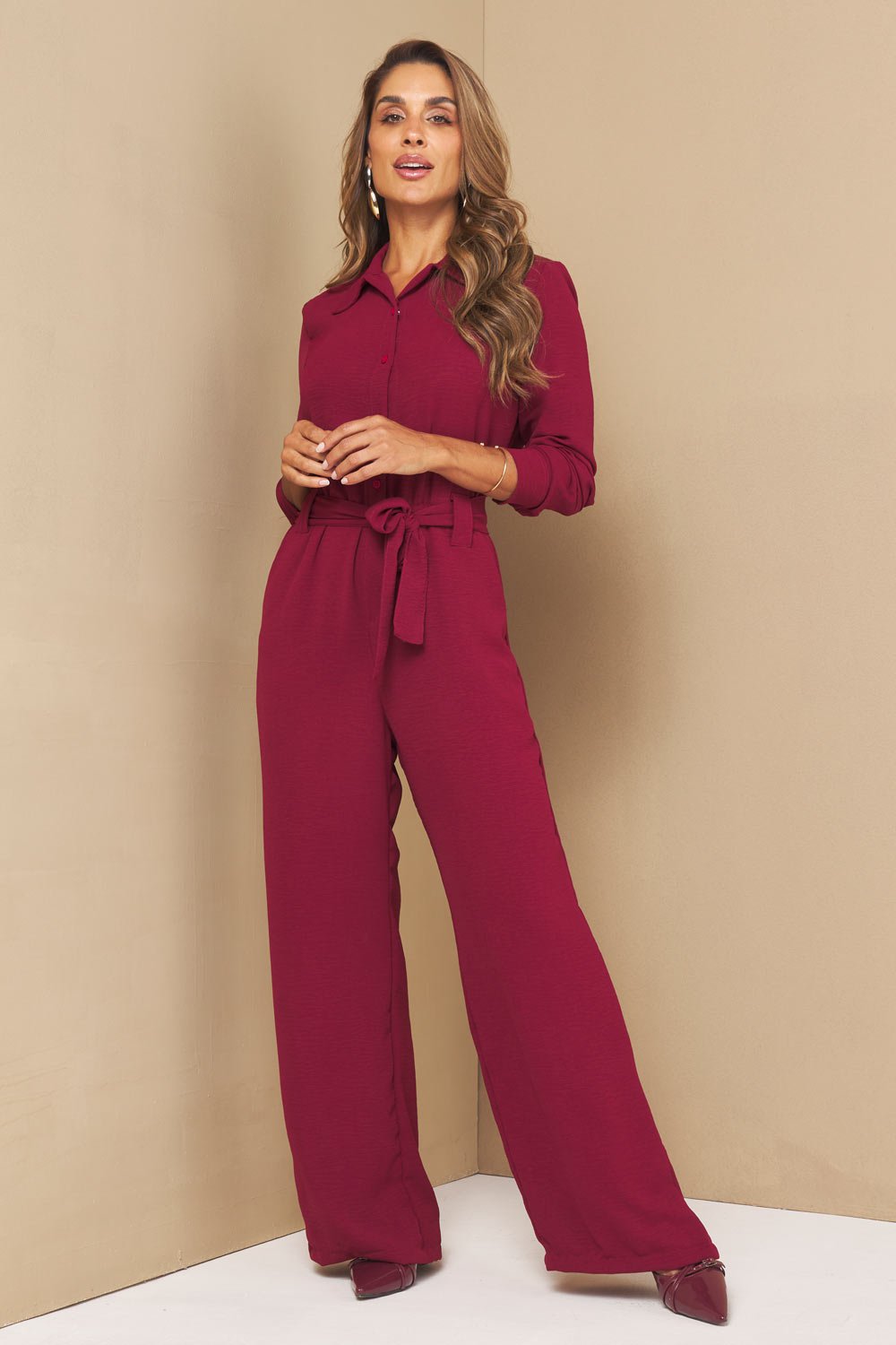 O Macacão Rafa é a peça-chave para quem deseja unir praticidade e elegância em um único visual. Confeccionado em tecido Air Flow, ele tem toque fresco, textura sutil e um caimento que valoriza a silhueta. A gola estilo camisaria e o cinto faixa trazem aquele ar alinhado que funciona para qualquer ocasião — do trabalho ao encontro especial.