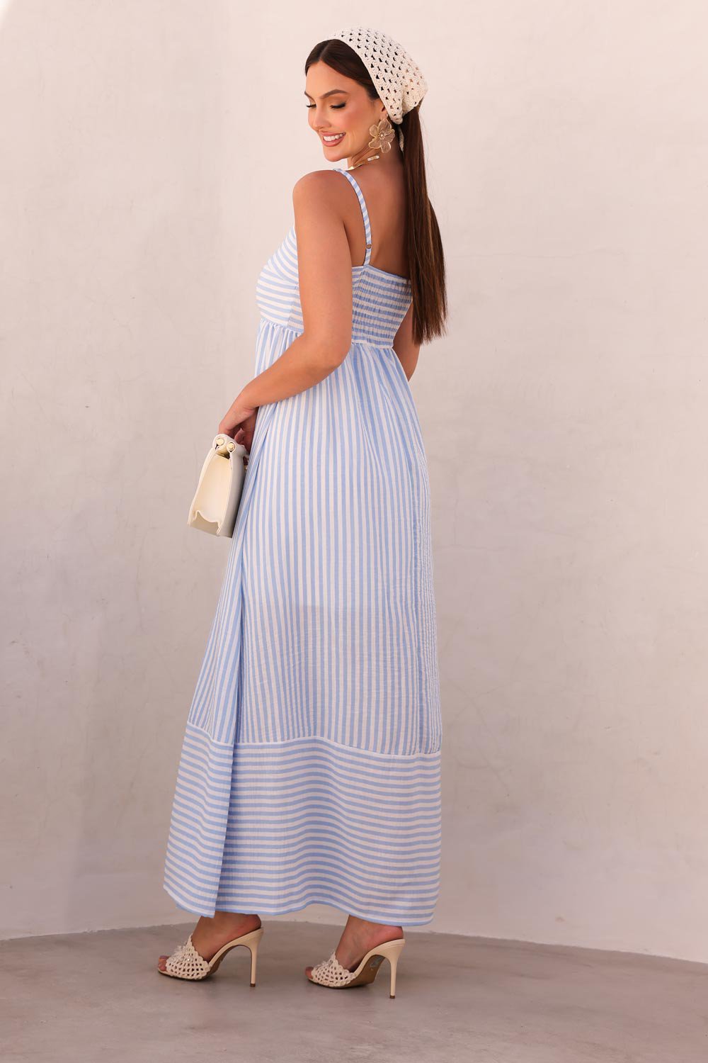 O Vestido Olga é a definição de leveza e elegância para os dias ensolarados. Com modelagem fluida, alças finas e estampa listrada charmosa, ele combina o frescor do verão com o toque sofisticado do tecido Cielo Linen. Um vestido que transborda feminilidade e praticidade para o dia a dia.